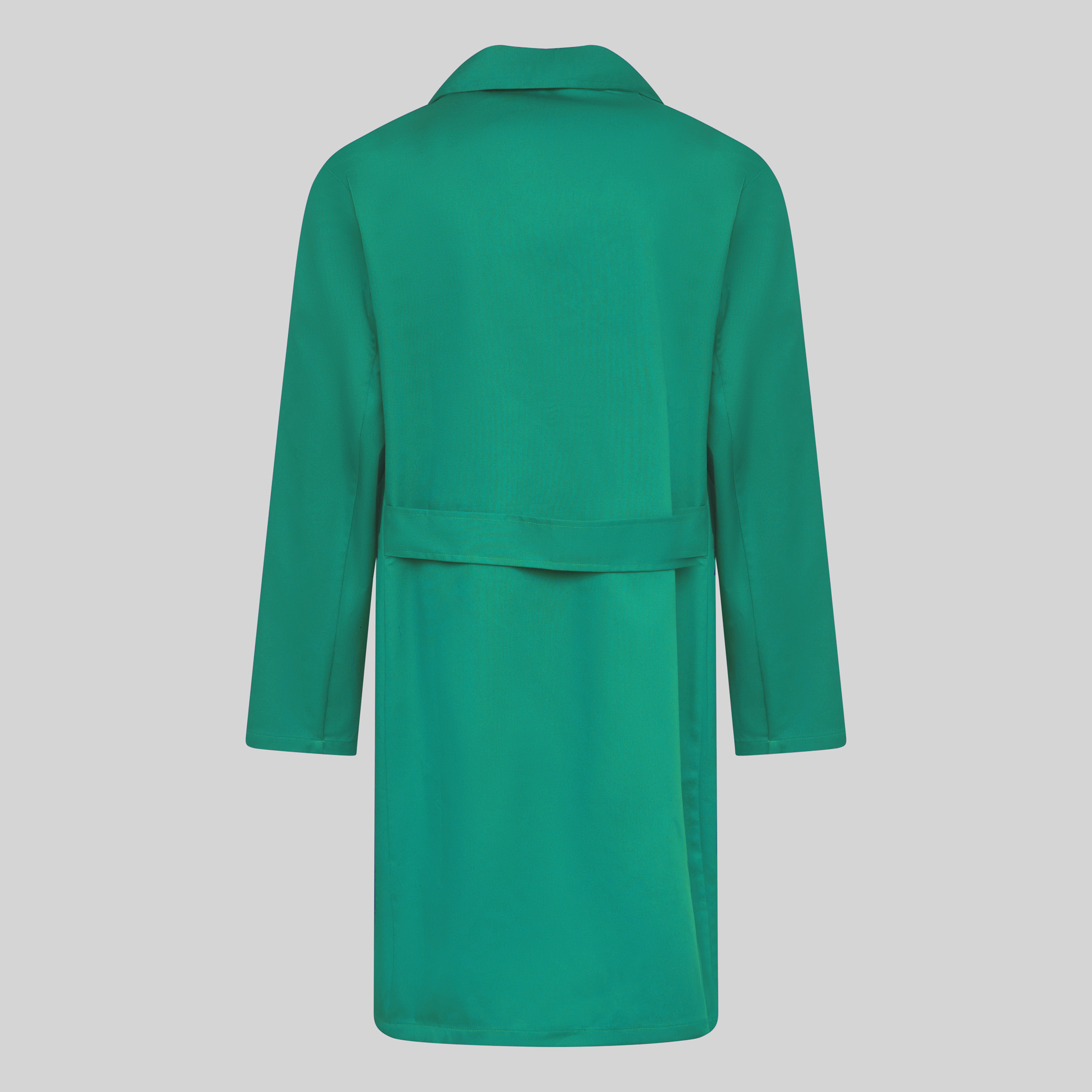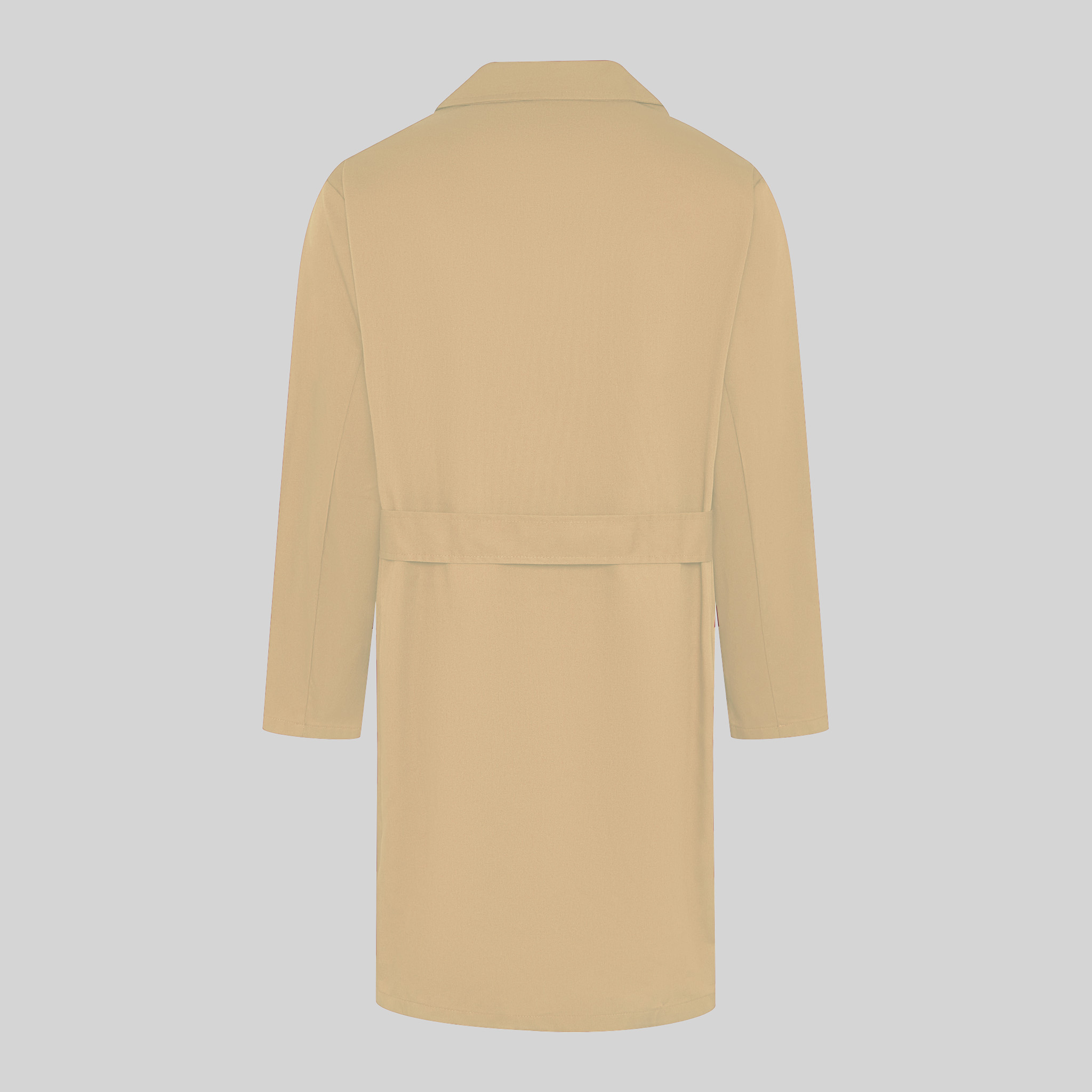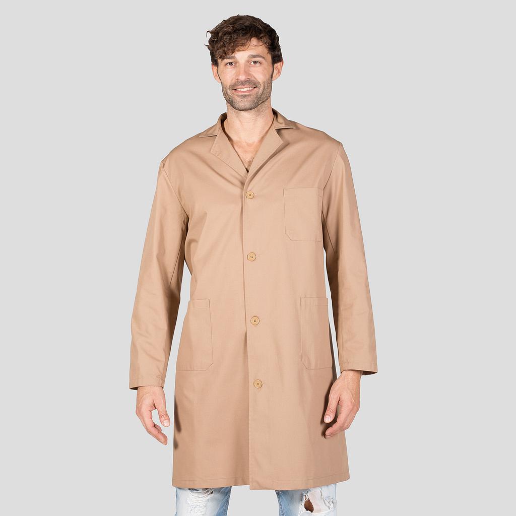 Bata unisex de manga larga en sarga, con cuello con solapa, costadillos y cinturón trasero para un ajuste cómodo. Incluye bolsillo en pecho y dos bolsillos en la cintura. Resistente, versátil y disponible en varios colores. Ideal para entornos sanitarios y profesionales.