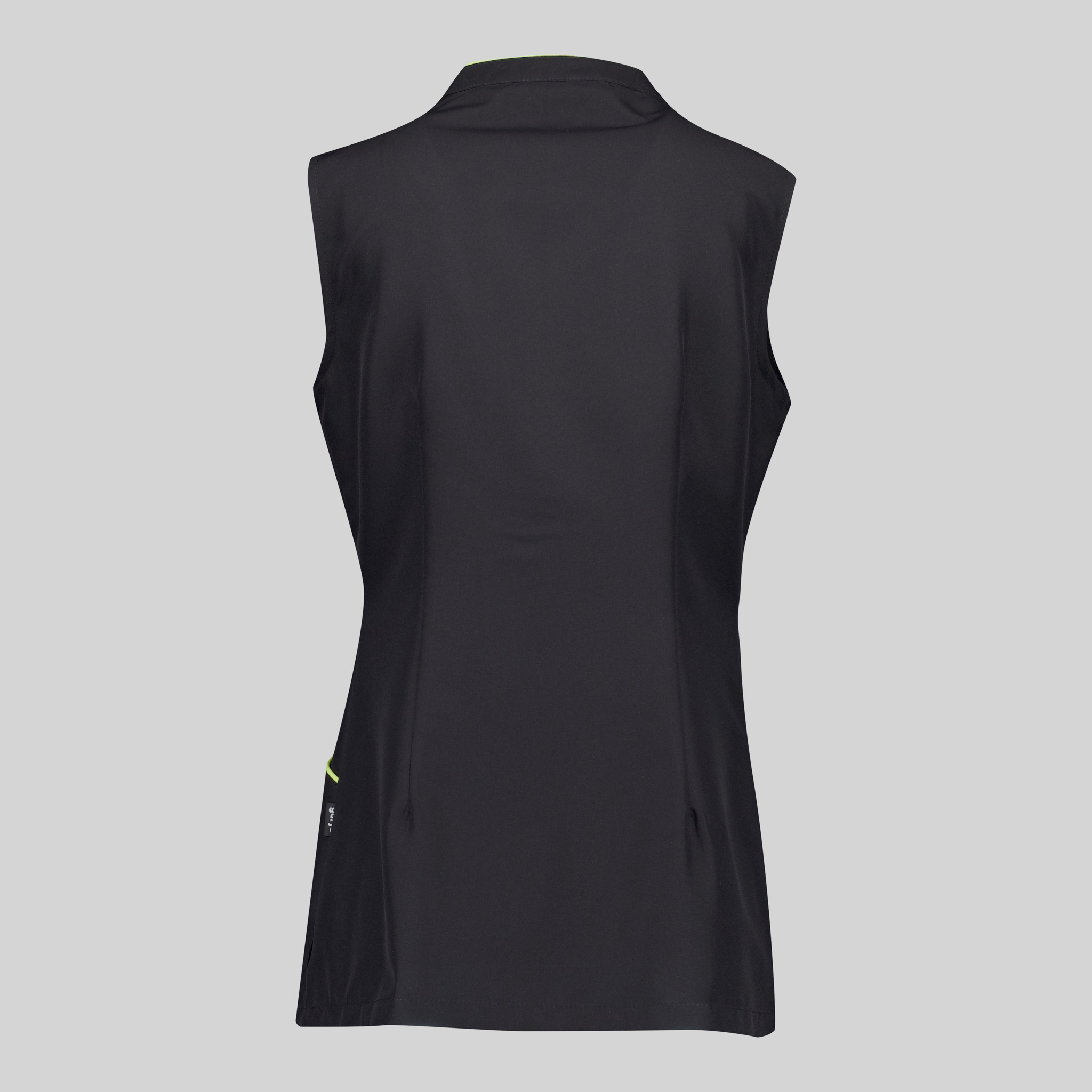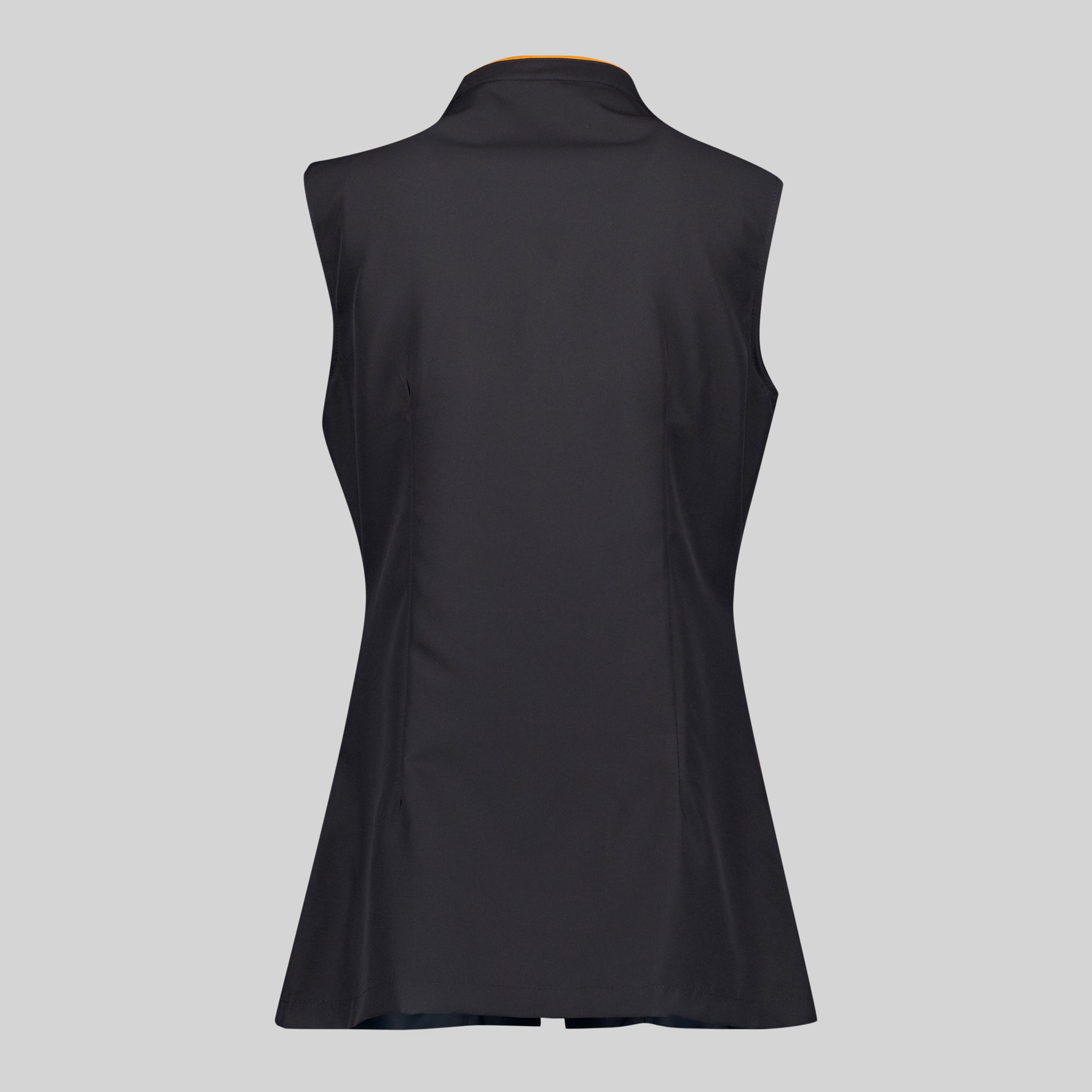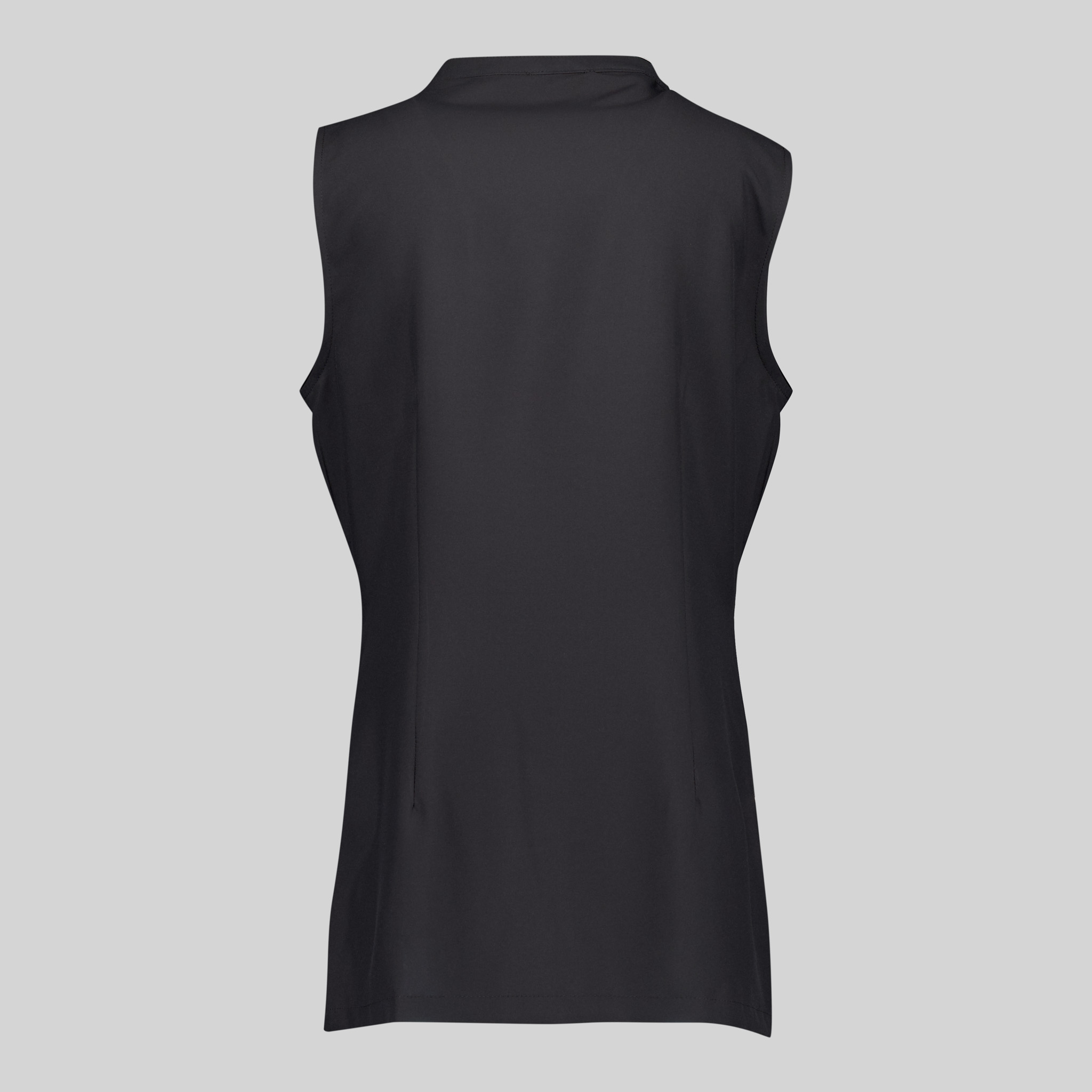La BLUSA MUJER BEGONIA es una casaca sin mangas con cuello tirilla, escote en pico y cremallera central, diseñada para ofrecer elegancia y funcionalidad. Con dos bolsillos laterales (uno doble) y confeccionada en microfibra antibacteriana 100% poliéster, es transpirable, lavable a 90º, de secado rápido, sin plancha y repelente al cabello. Disponible en negro con vivos en cuatro colores, es ideal para peluquerías, estéticas, spas y comercios.