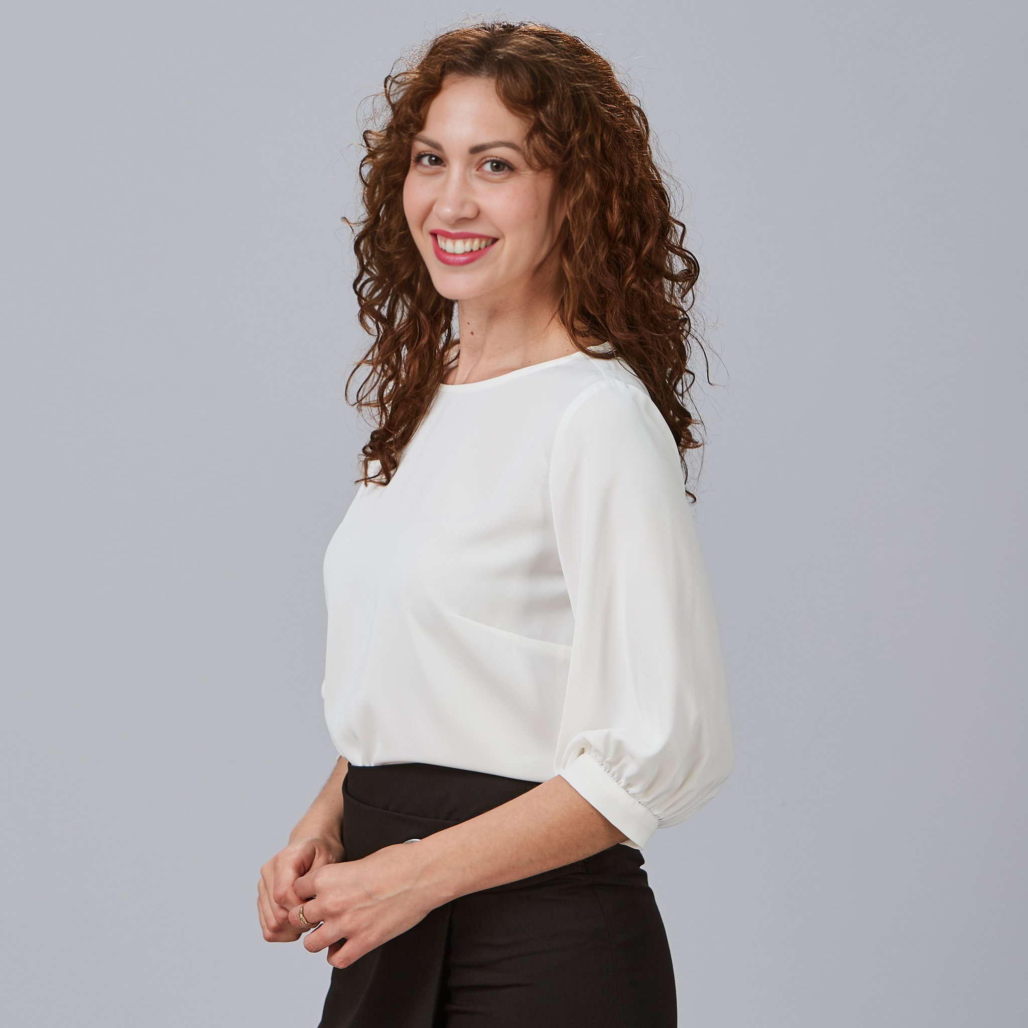 Blusa Mujer Manga Rizada Rosanna 240006 con diseño semi ajustado, manga 3/4 sin abotonadura y pinzas delanteras. Confeccionada en tejido BREEZE (poliéster y elastano), ligera, suave y resistente a arrugas. Largo de 66 cm, disponible en colores atemporales, ideal para entornos profesionales y hostele