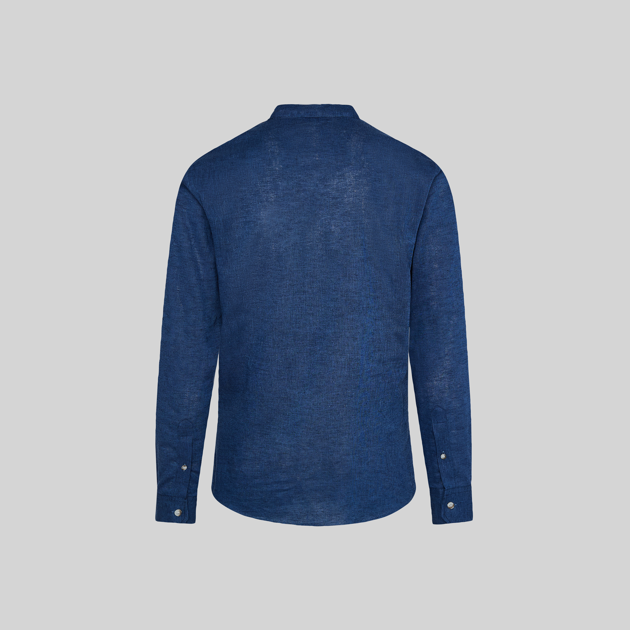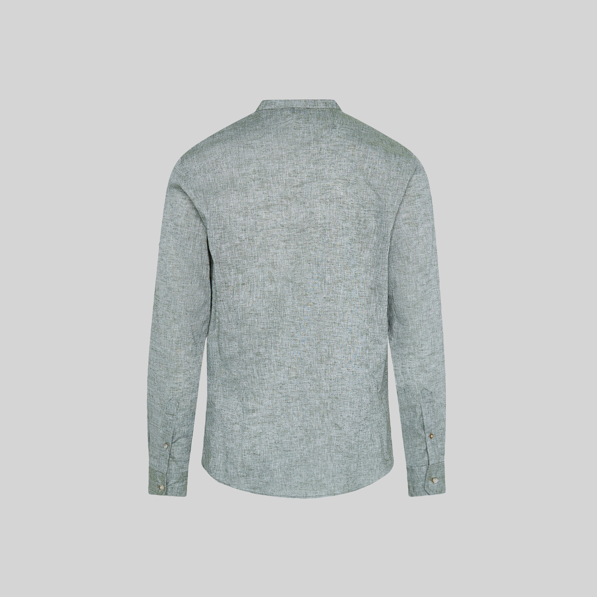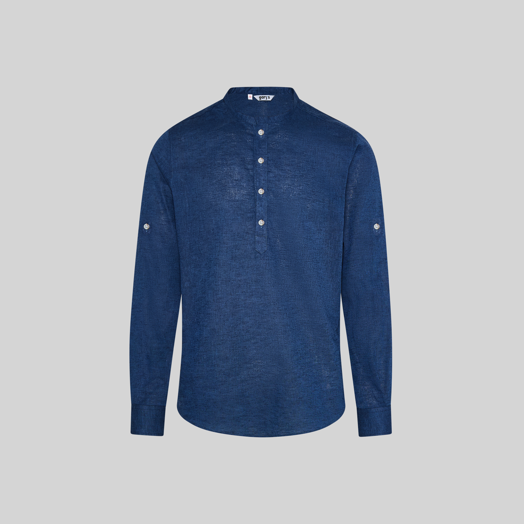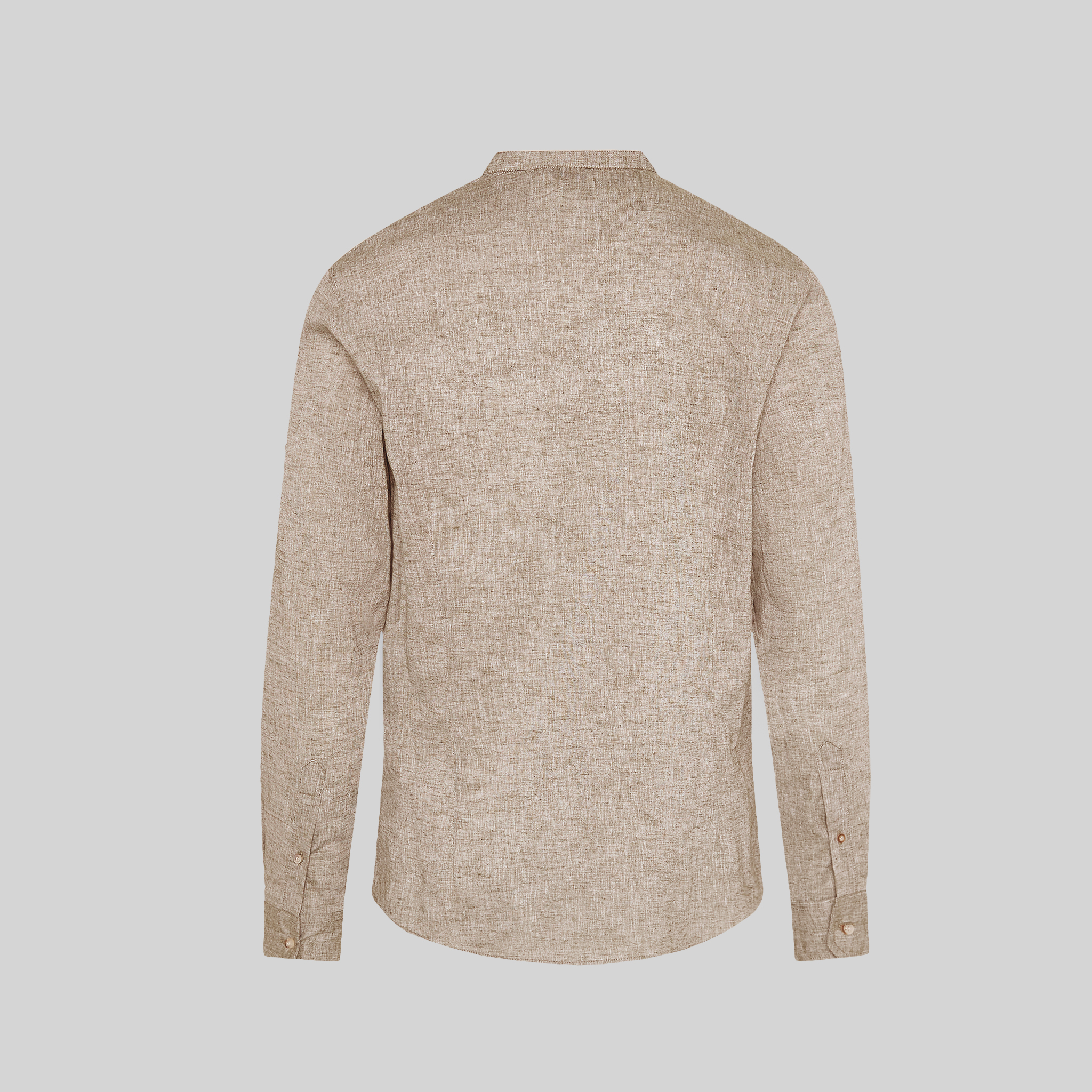 Camisa de lino (55%) y algodón (45%) con cuello mao, elegante, fresca y resistente. Con manga larga remangable, ofrece versatilidad y comodidad durante la jornada laboral. Ideal para camareros y personal de hostelería. Disponible también en modelo para mujer ref. 210006.