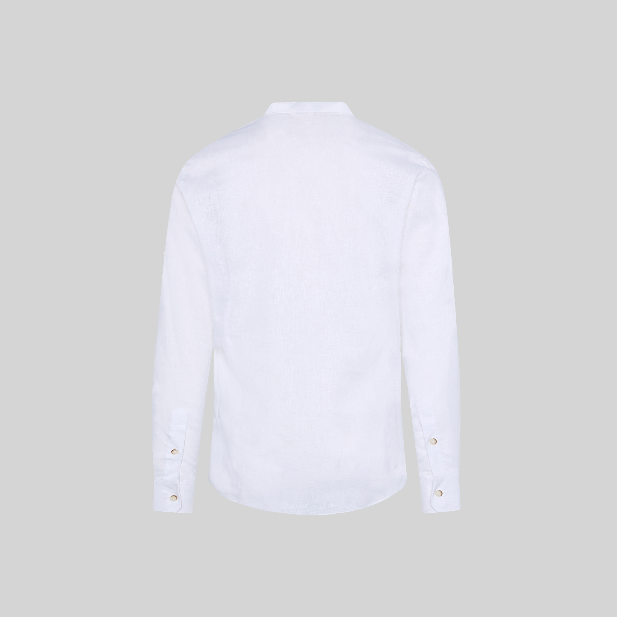 Descubre la elegancia natural y el confort premium de esta camisa con cuello mao, confeccionada en una sofisticada mezcla de lino (55%) y algodón (45%), un tejido que refleja calidad, frescura y distinción. Esta combinación ofrece una textura agradable al tacto, excelente transpirabilidad y una resistencia ideal para el exigente ritmo del sector hostelero.