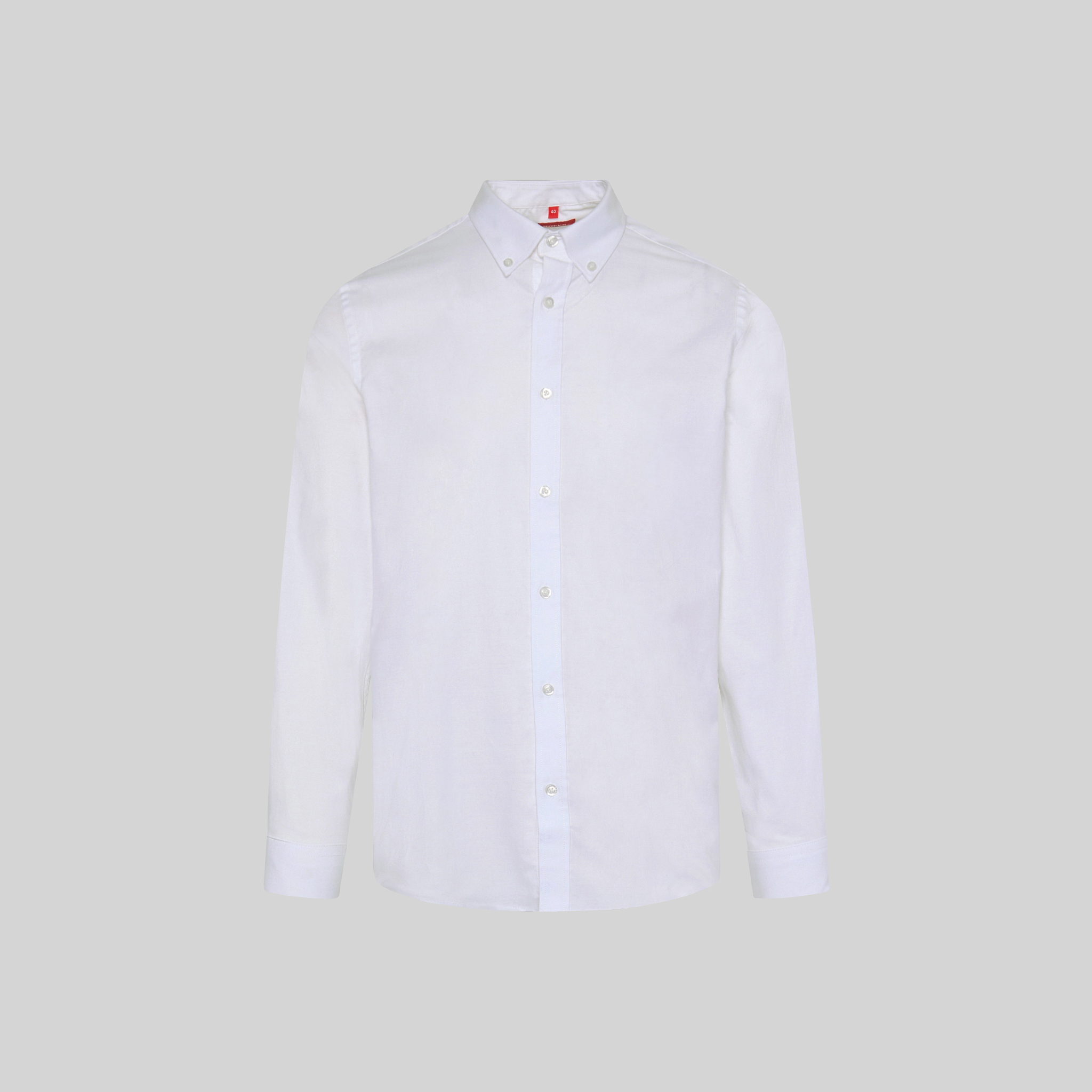 Confeccionada en tejido OXFORD de alta calidad (70% algodón – 30% poliéster), esta camisa combina la suavidad y transpirabilidad del algodón con la resistencia y fácil mantenimiento del poliéster. Sus detalles cuidadosamente elaborados—botones en las palas del cuello, puños abotonados, canesú y pinzas en la espalda—garantizan un ajuste impecable, una excelente caída y una imagen profesional impecable durante toda la jornada.