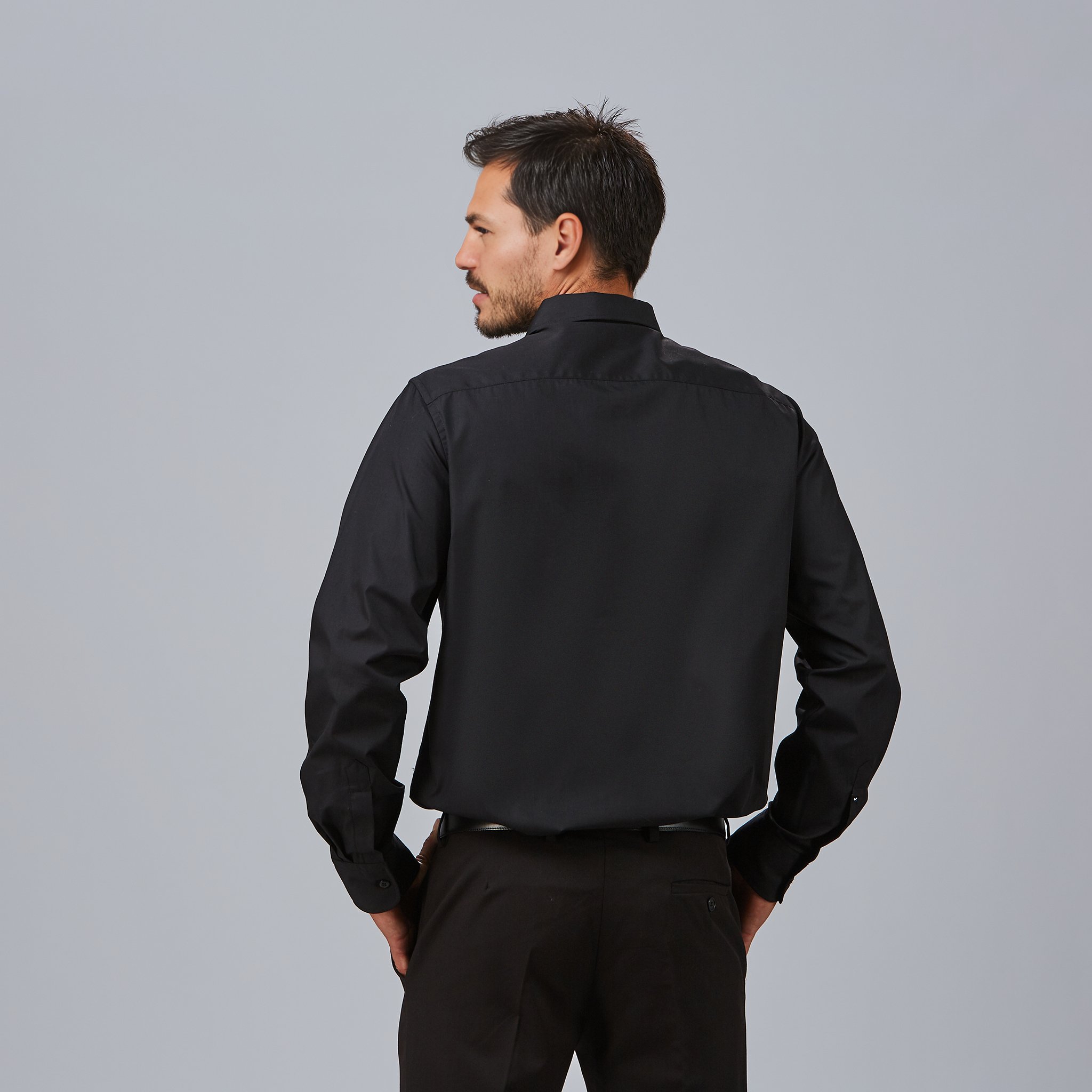 Camisa de hombre de manga larga, con bolsillo en el pecho, puños abotonados y canesú en la espalda. Disponible en blanco o negro. Elegante y funcional, ideal para hostelería, comercios, oficinas y recepción. Modelo de la gama RED LINE.