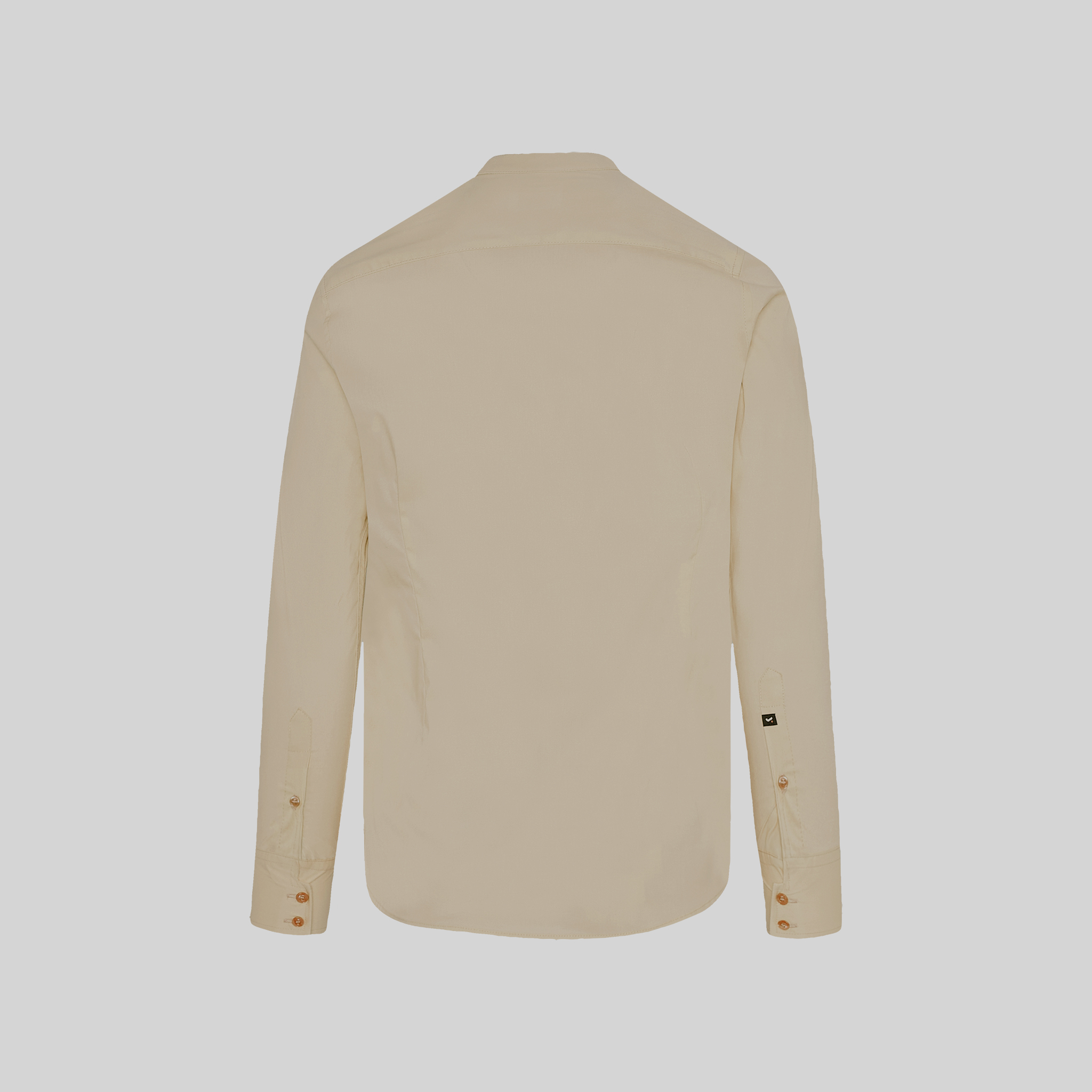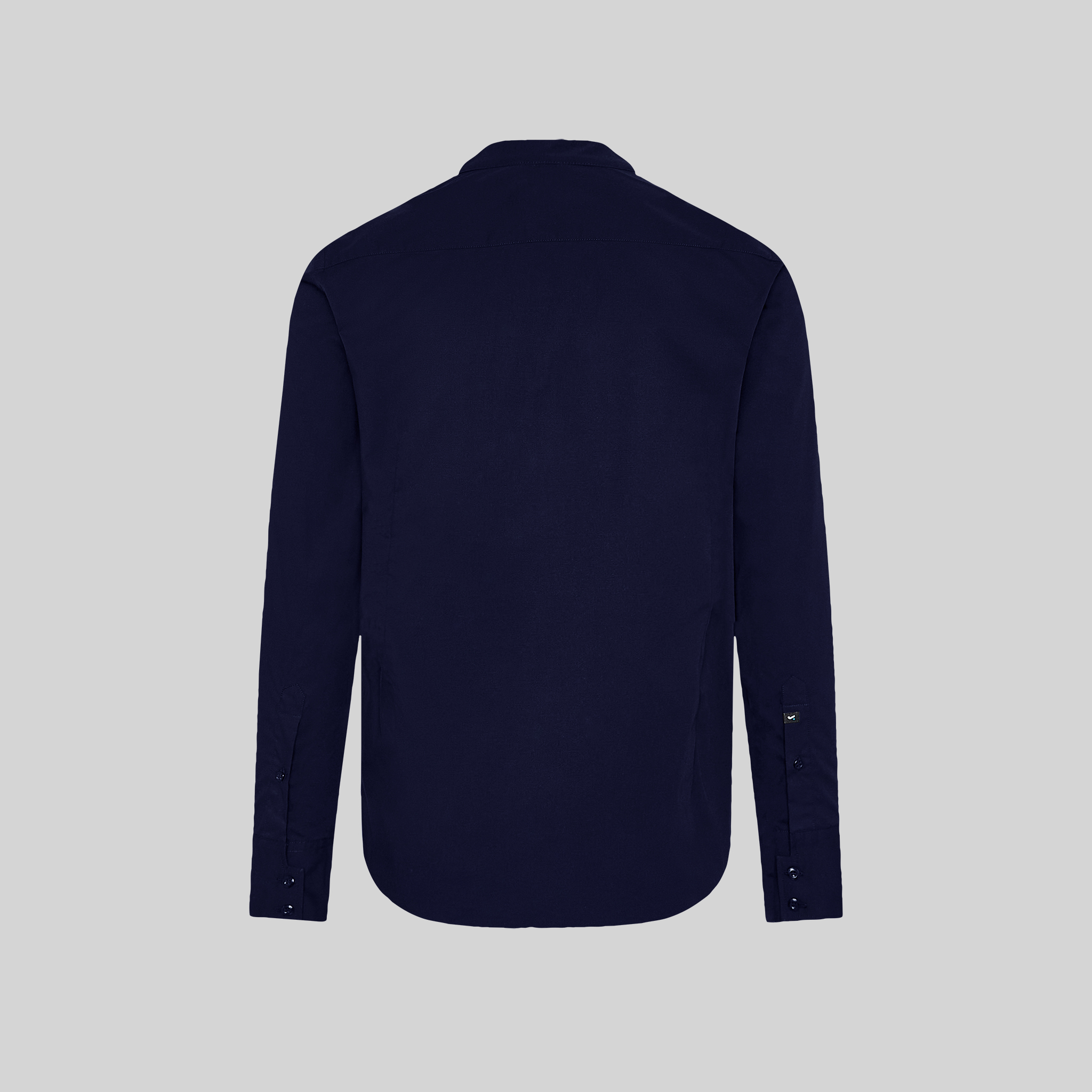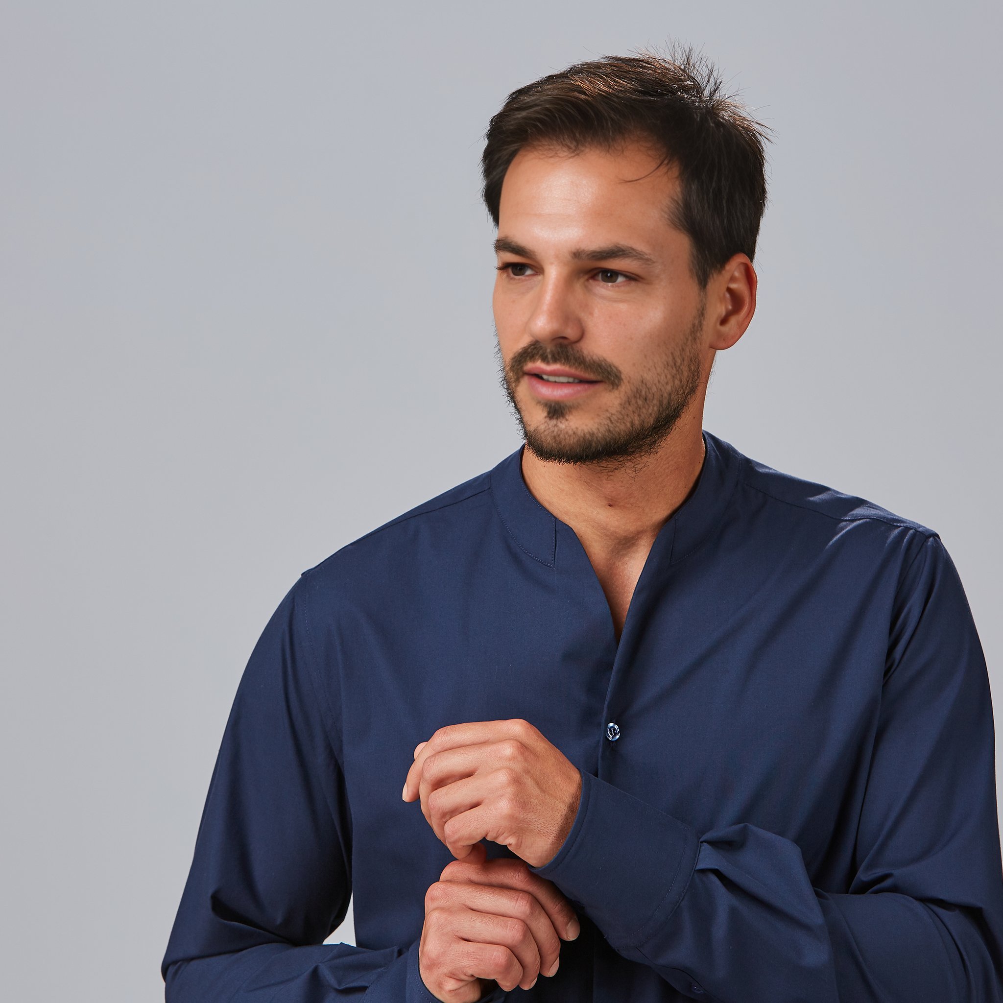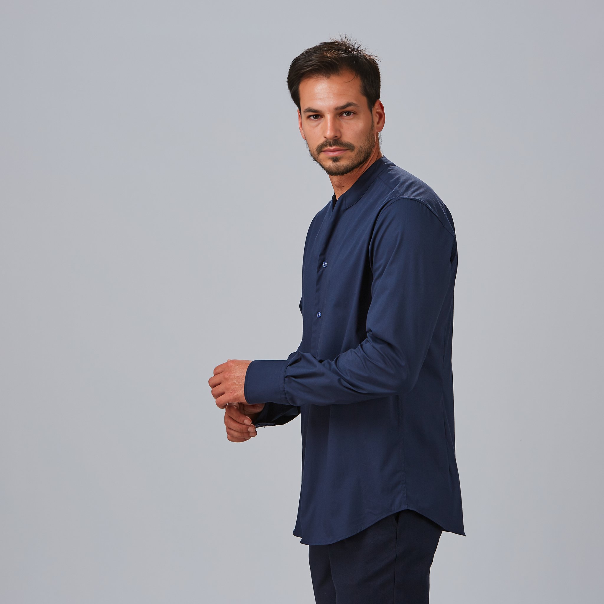 Diseñada con cuello chimenea y corte slim fit, realza la silueta masculina ofreciendo un aspecto estilizado y actual, perfecto para entornos laborales o eventos formales.