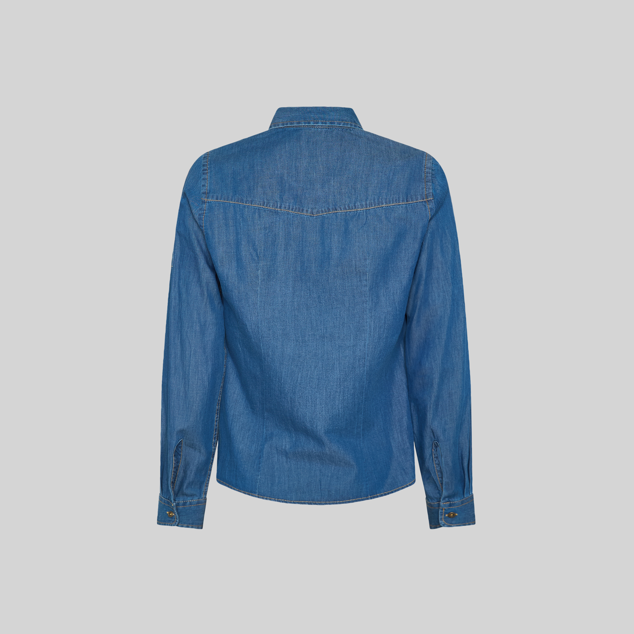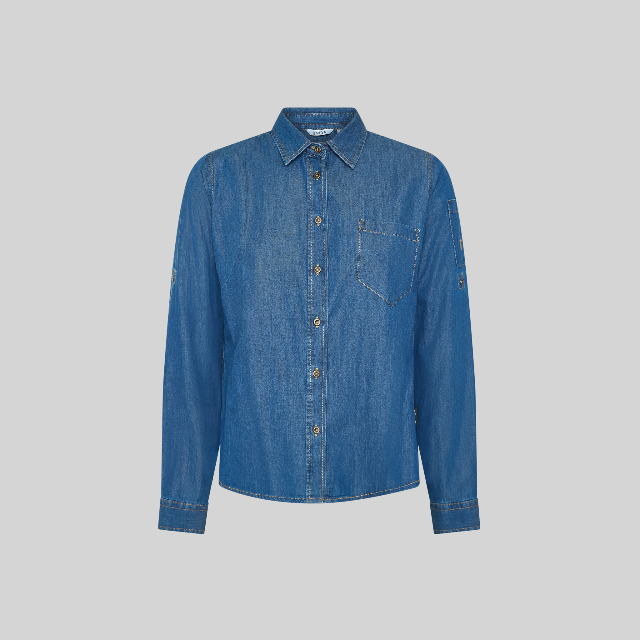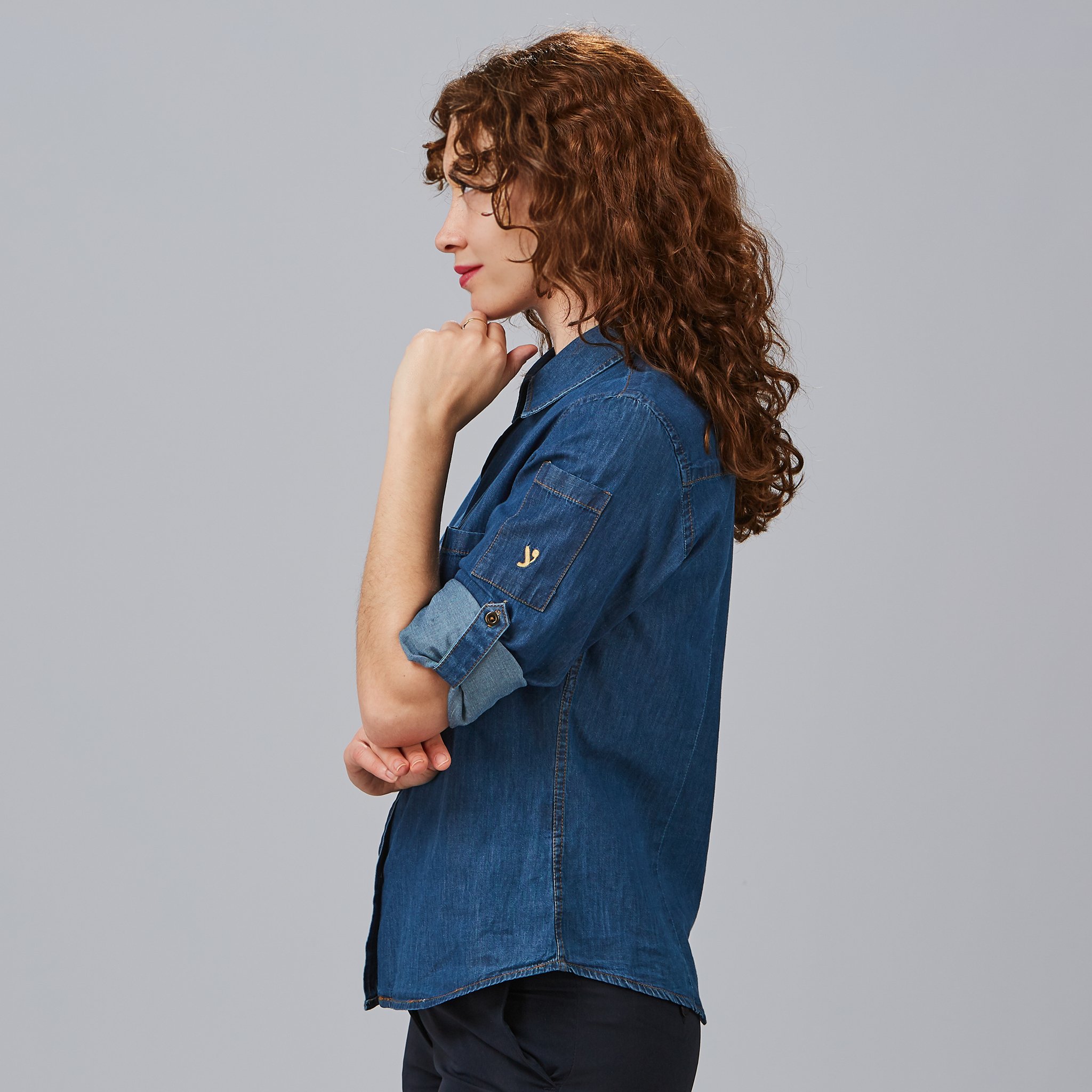 Camisa de mujer TEJANO FINO LAVADO VALERIA, de manga larga regulable, confeccionada en popelín vaquero lavado. Con pinzas que realzan la silueta y dos bolsillos funcionales, ofrece comodidad, estilo y practicidad, ideal para uniformes de hostelería y comercio.