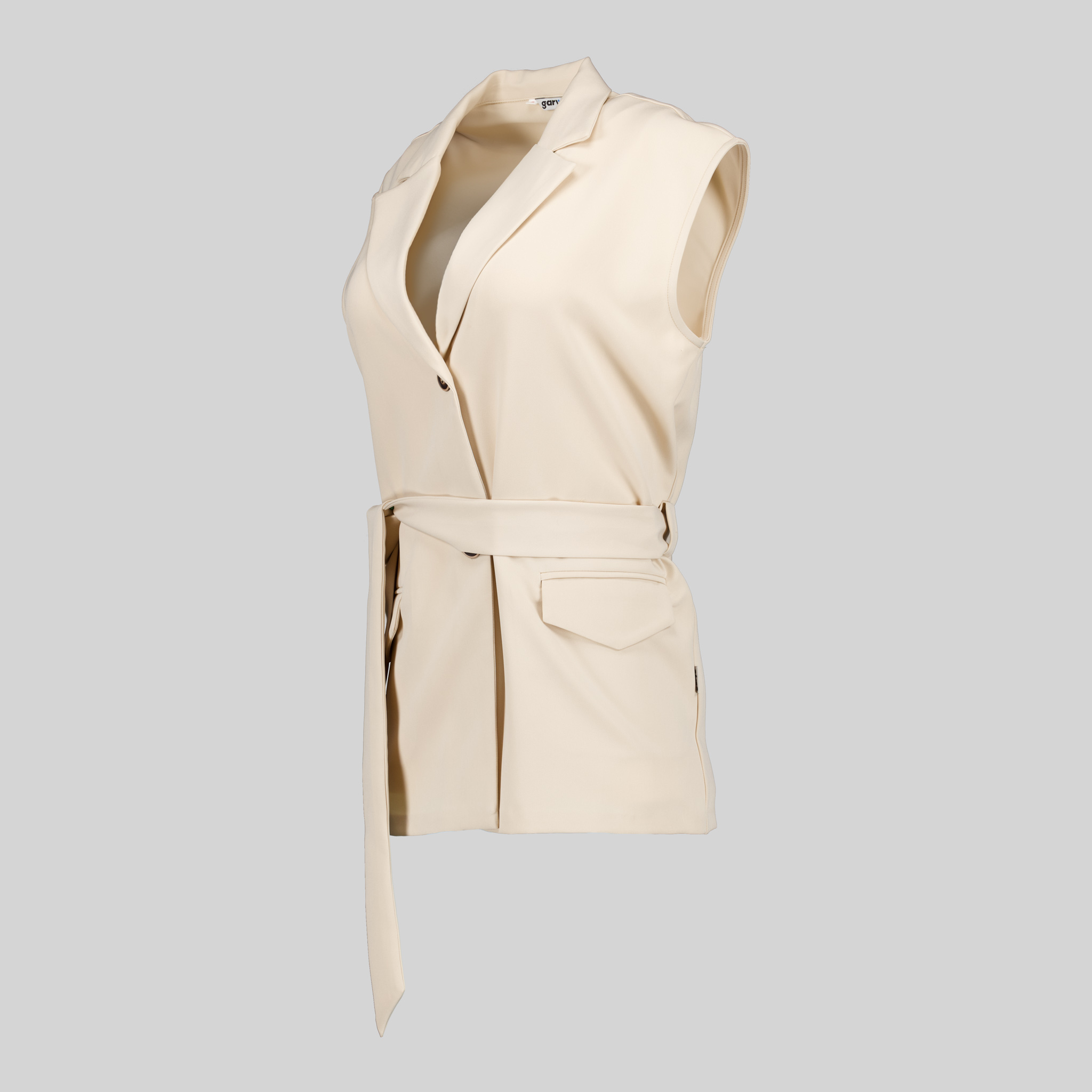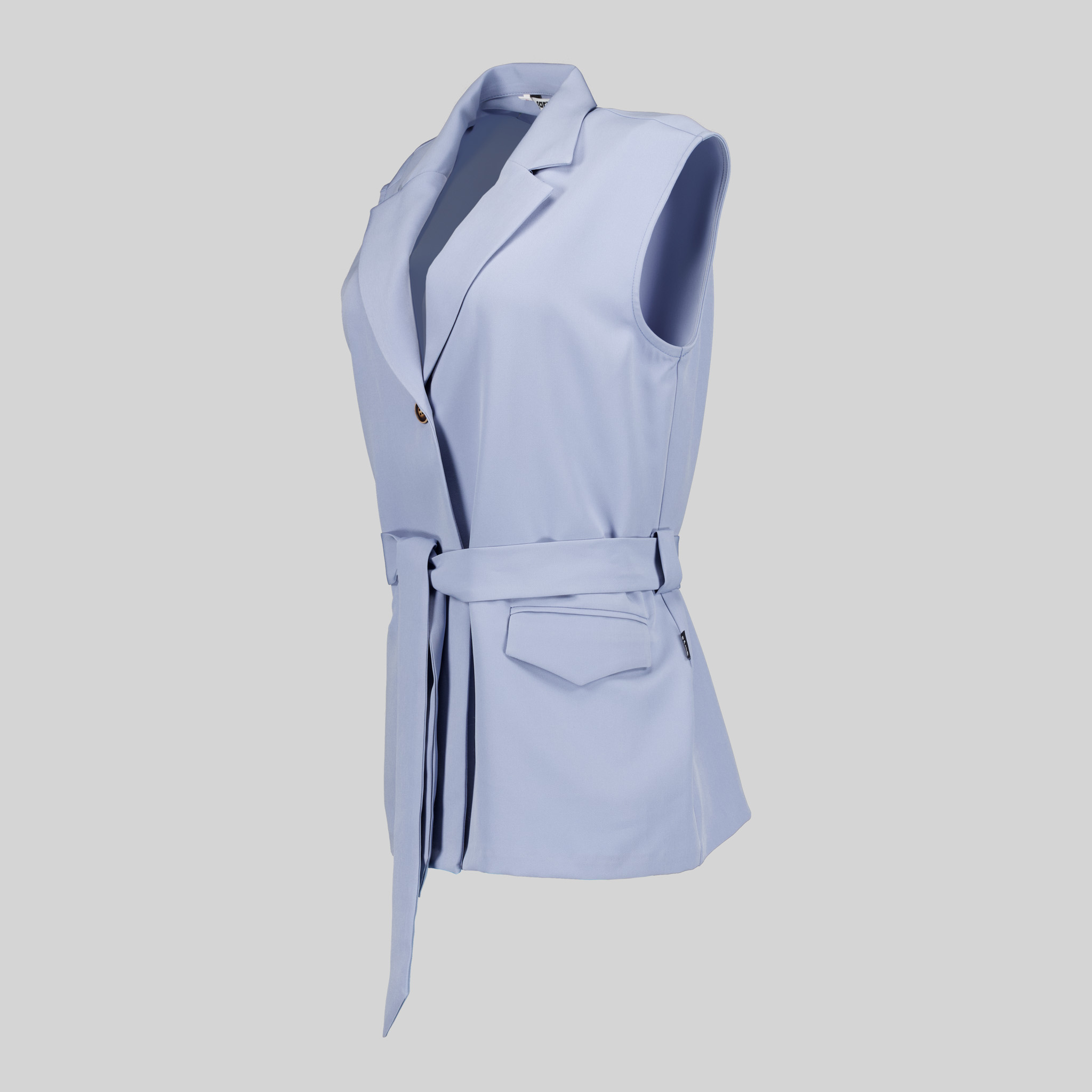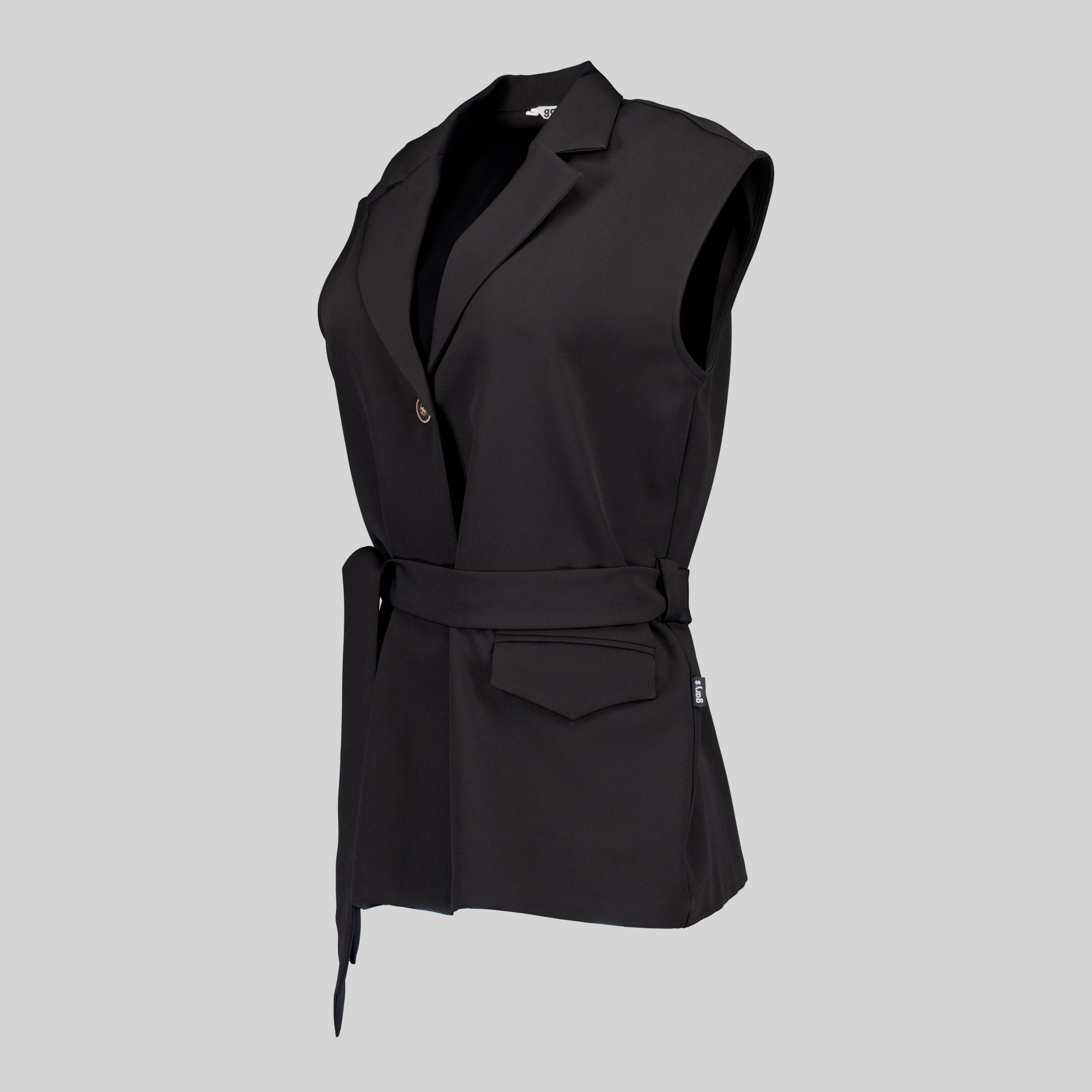 El Chaleco Mujer Solapa ARABIS combina elegancia y funcionalidad con su diseño semi ajustado, solapa clásica y botones de pastilla. Fabricado en PLANA (88% poliéster, 12% elastano), ofrece comodidad, resistencia y estilo. Con bolsillos laterales y cinturón ajustable, es ideal para profesionales de peluquería, estética y comercio.