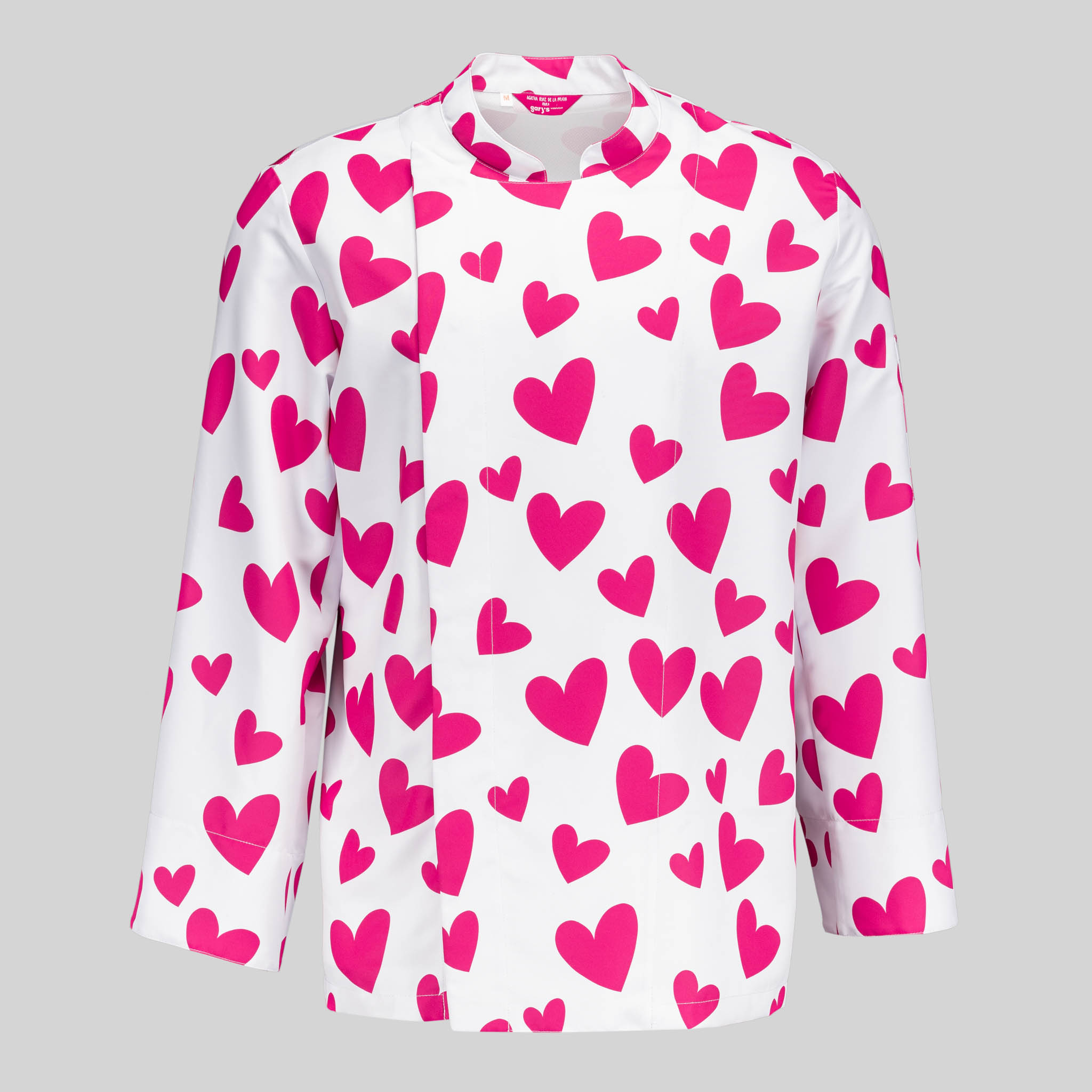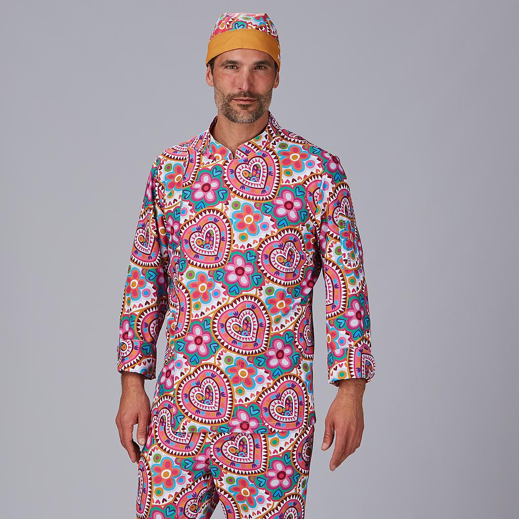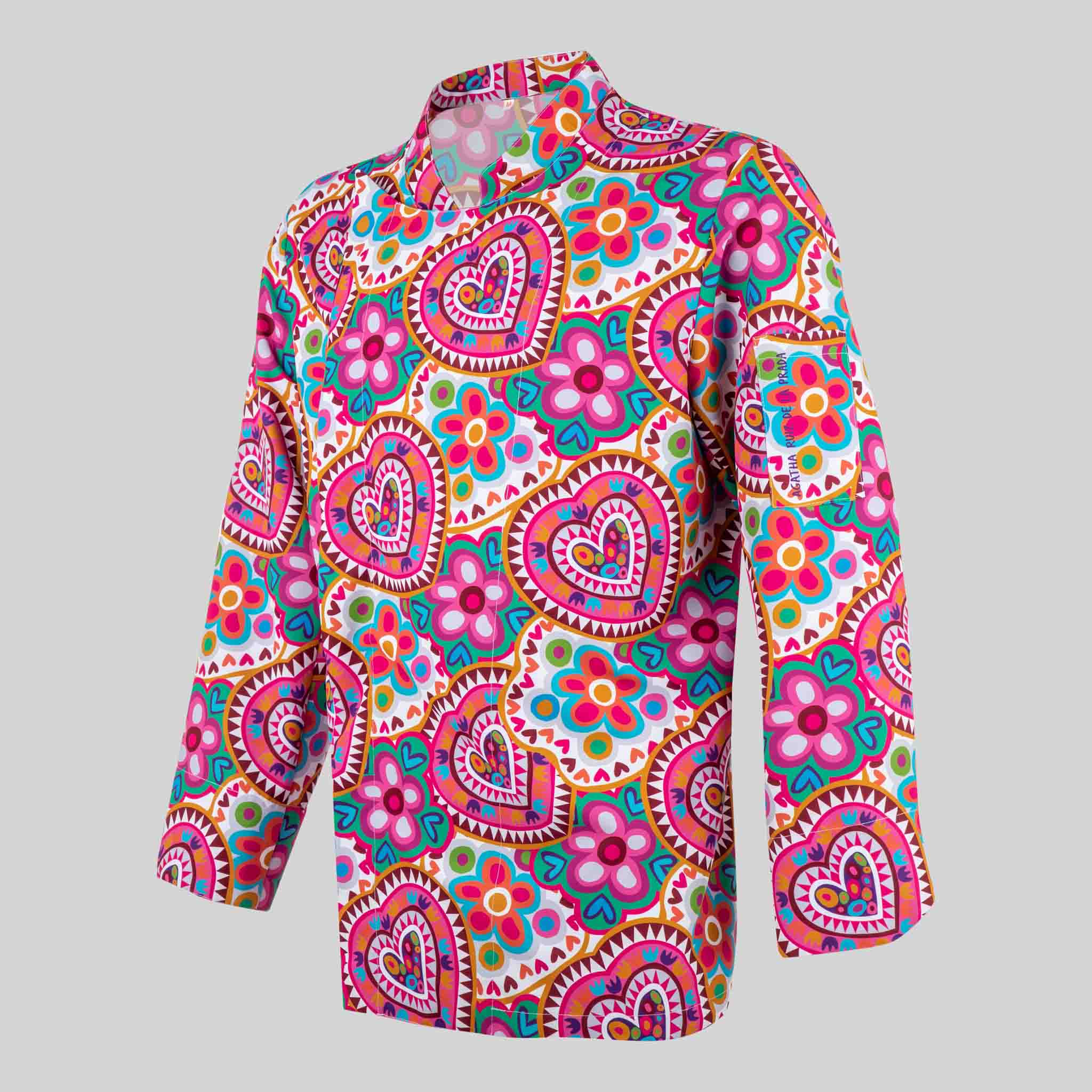 Disponible en dos originales estampados —“Cuore Rosa” y “Mexicano”—, esta chaqueta te permite destacar con estilo y personalidad sin renunciar al confort y al rendimiento que exige la cocina profesional.
