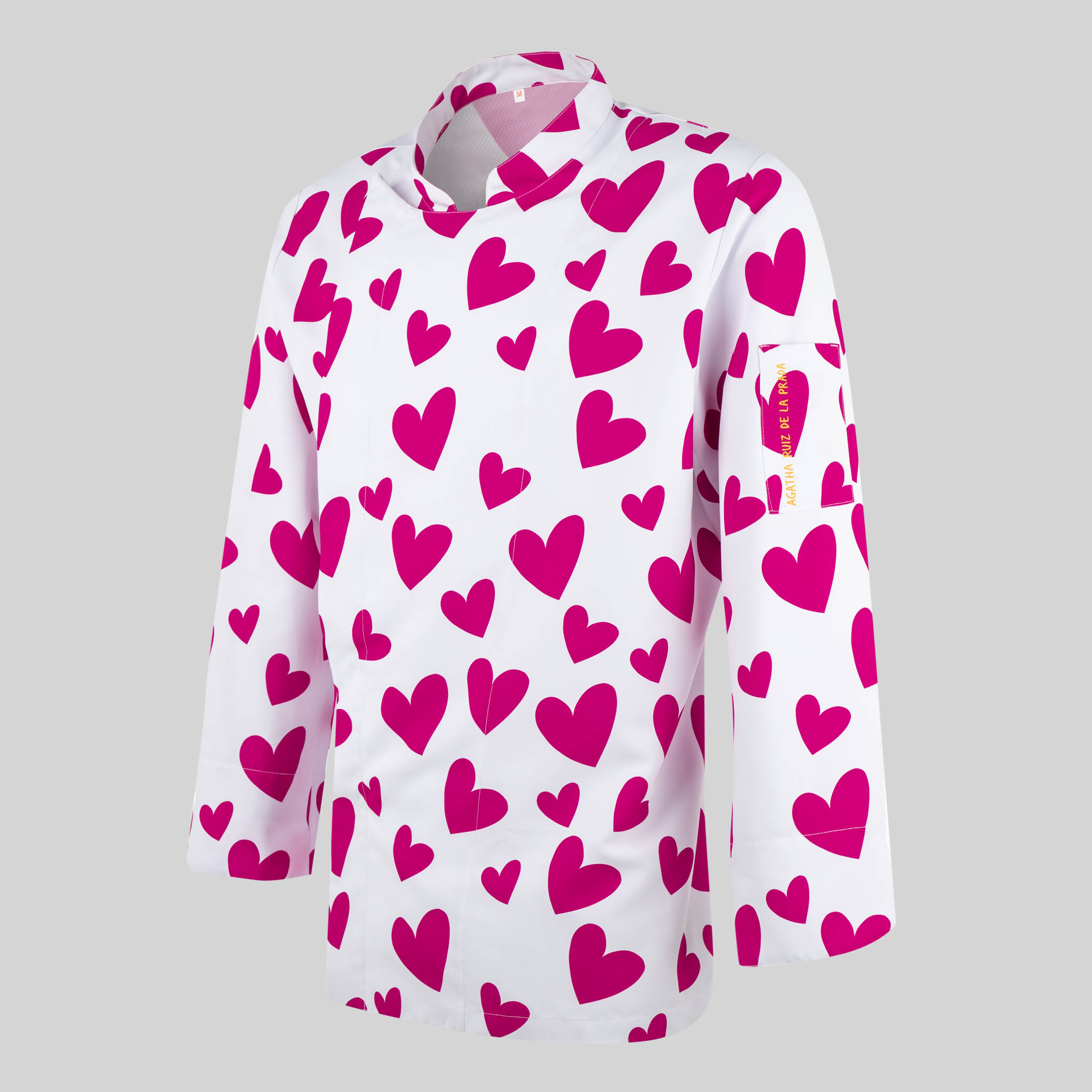 Chaqueta de chef unisex AGATHA diseñada junto a Agatha Ruiz de la Prada. Con espalda AEROSILVER transpirable, microfibra 100% poliéster, y bolsillo en la manga. Cierre cruzado y detalles pespunteados para un estilo moderno. Disponible en “Cuore Rosa” y “Mexicano”.