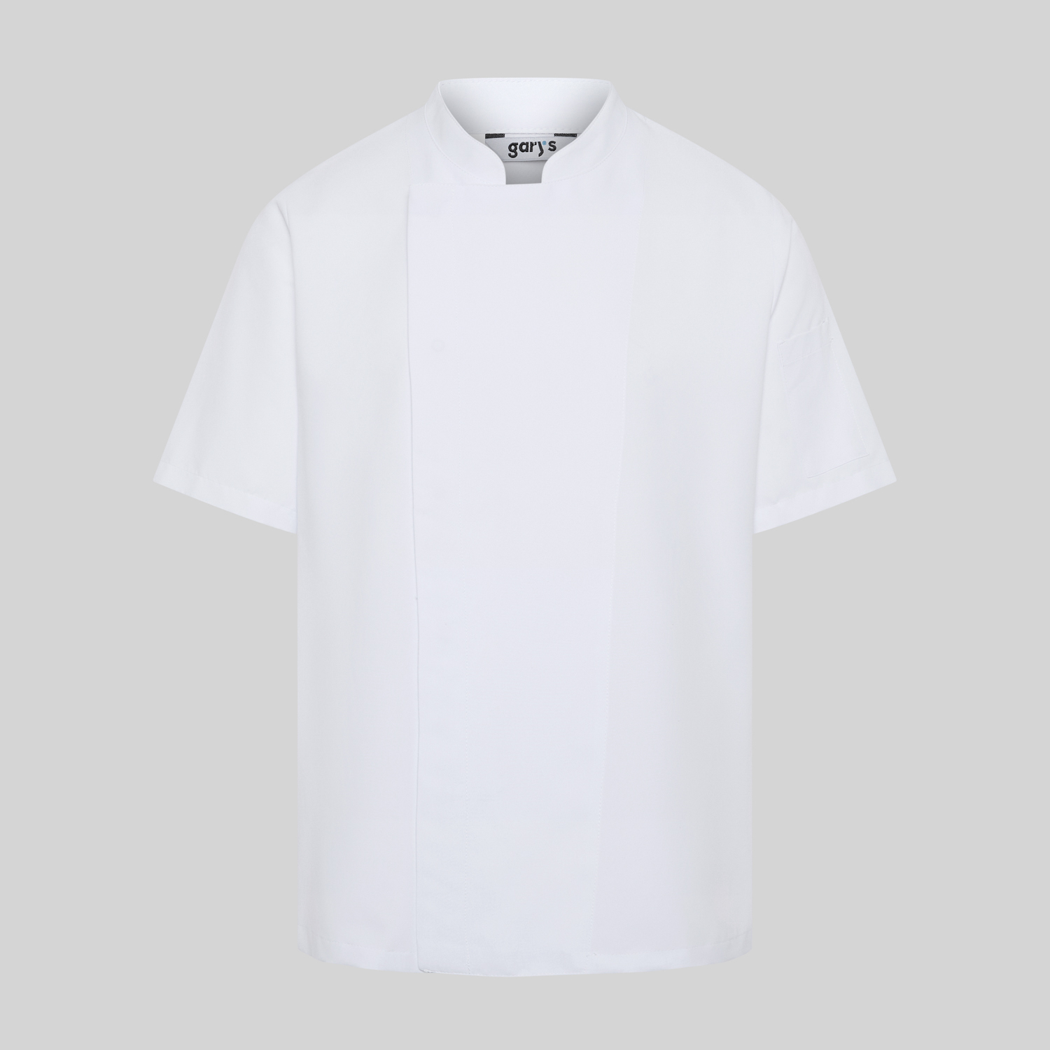 Su cierre delantero izquierdo sobre derecho aporta un toque elegante y profesional, asegurando una cobertura impecable que ayuda a mantener una apariencia limpia en todo momento. Esta versión de manga corta ofrece una mayor libertad de movimiento y resulta perfecta para cocinas cálidas o para quienes buscan un uniforme más ligero. Para quienes requieren mayor cobertura, también está disponible la versión de manga larga (943200).