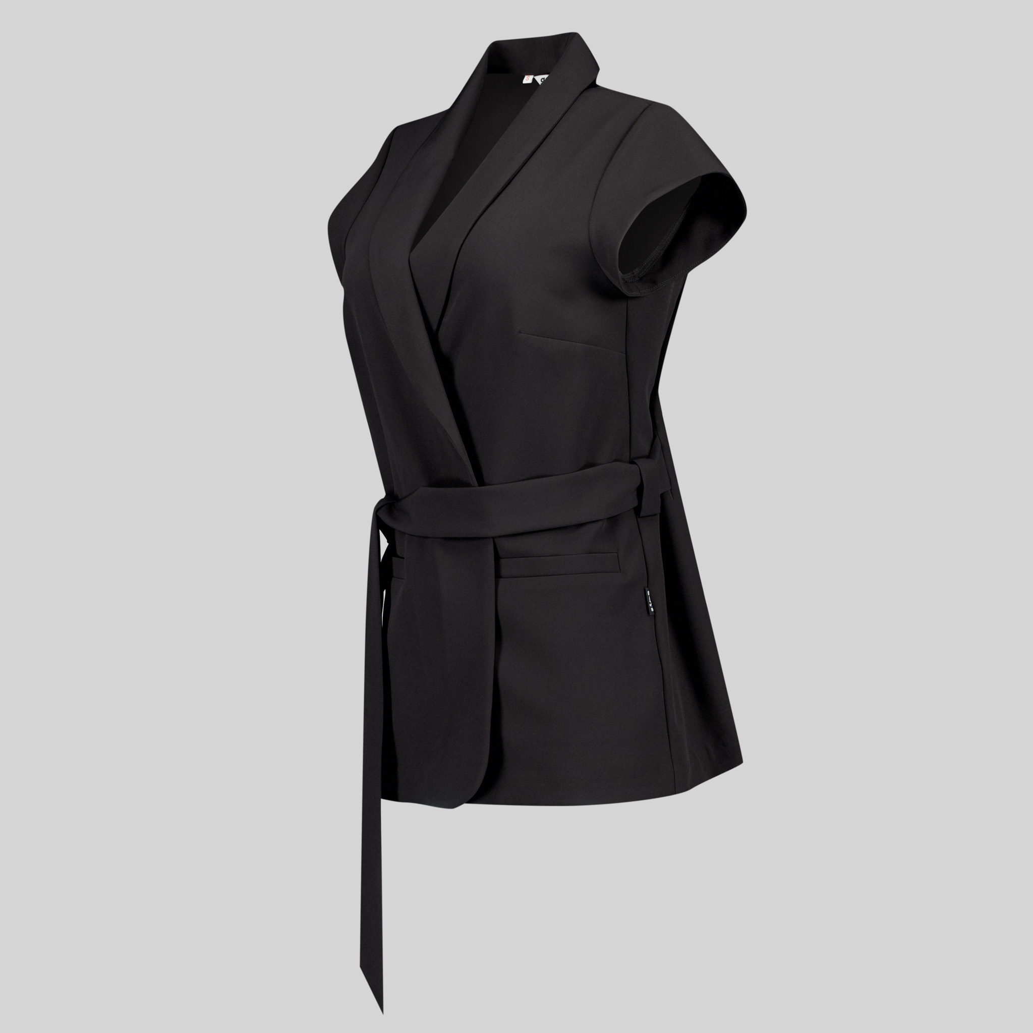 La Chaqueta Mujer Cuello Smoking Meli combina sofisticación y funcionalidad con su cuello tipo smoking, cinturón ajustable y bolsillos delanteros. Confeccionada en tejido PLANA (88% poliéster, 12% elastano), ofrece comodidad, elasticidad y durabilidad, ideal para profesionales de peluquerías, spas y centros de estética.