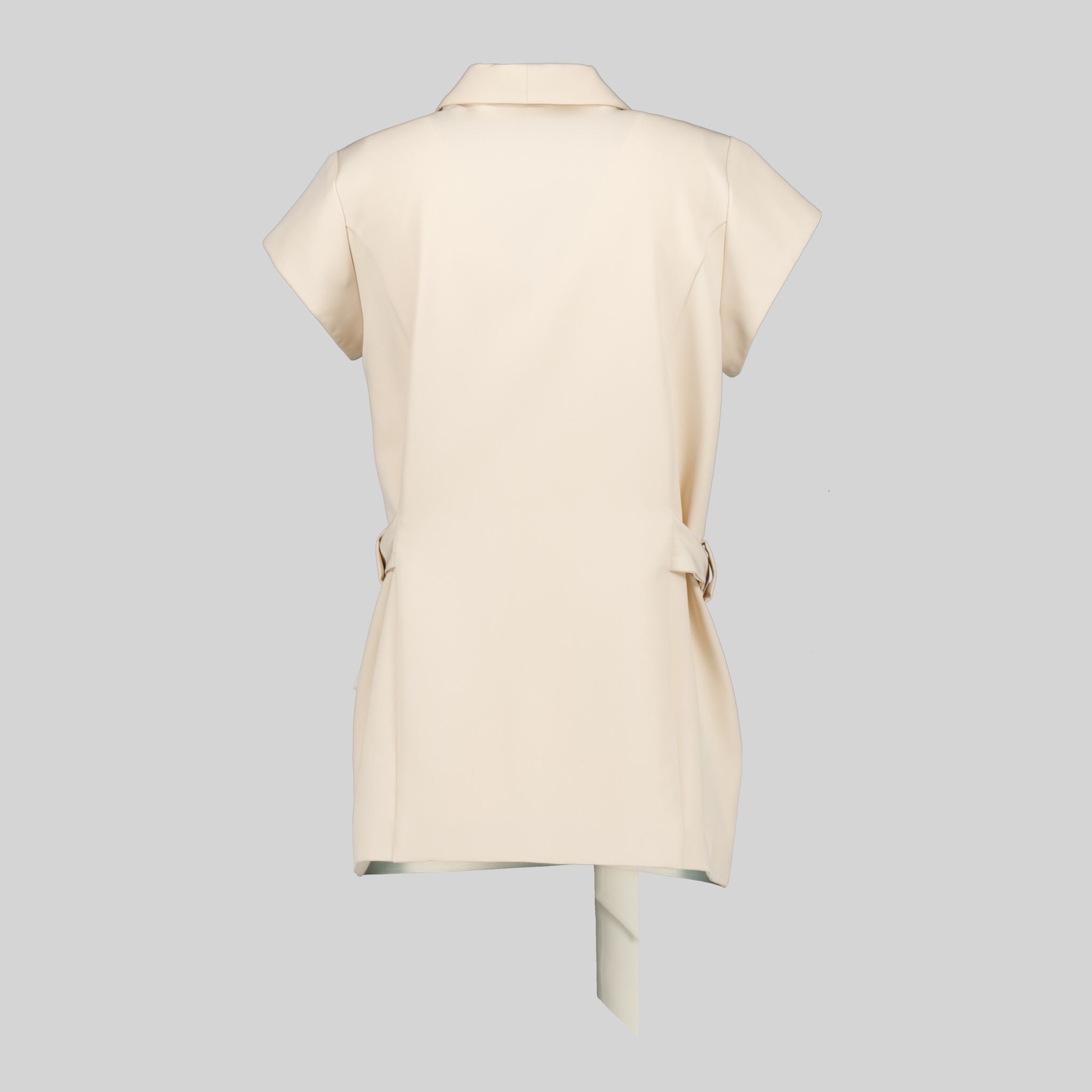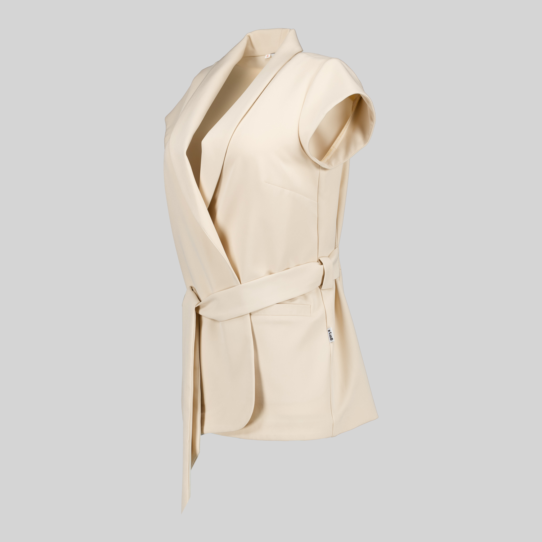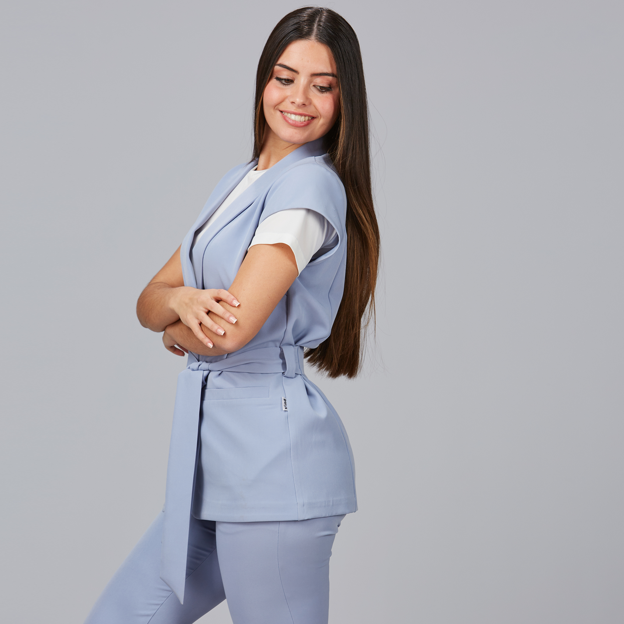 Su manga corta a la sisa proporciona libertad total de movimiento, adaptándose con naturalidad al ritmo de tu jornada laboral. Además, incorpora un cinturón ajustable que permite personalizar el ajuste a la cintura, resaltando la silueta de forma elegante y femenina.