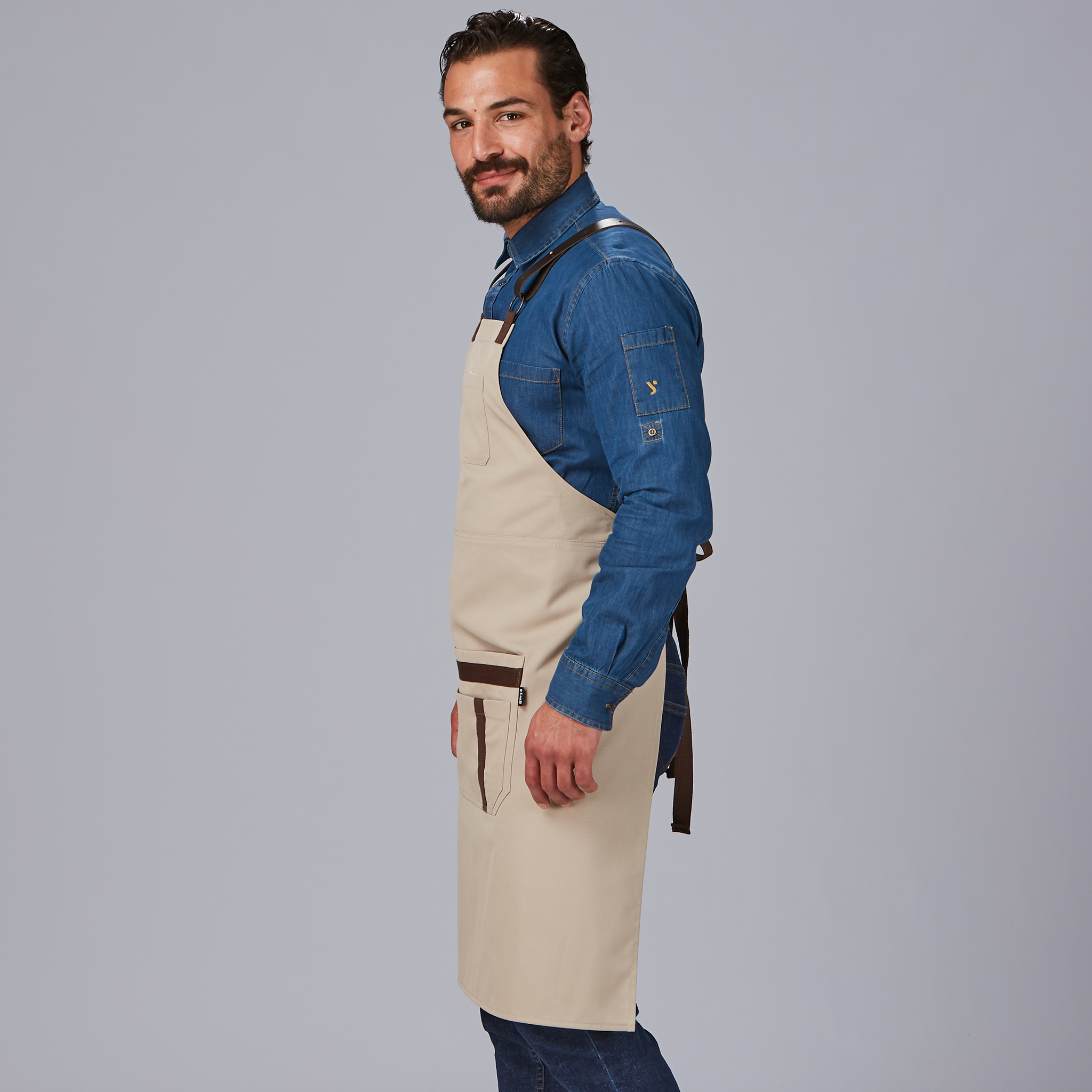 Disponible en negro, beige y azul petróleo, este mandil se adapta a diversos estilos y entornos profesionales, convirtiéndose en una opción versátil, moderna y eficiente para cualquier equipo de trabajo.