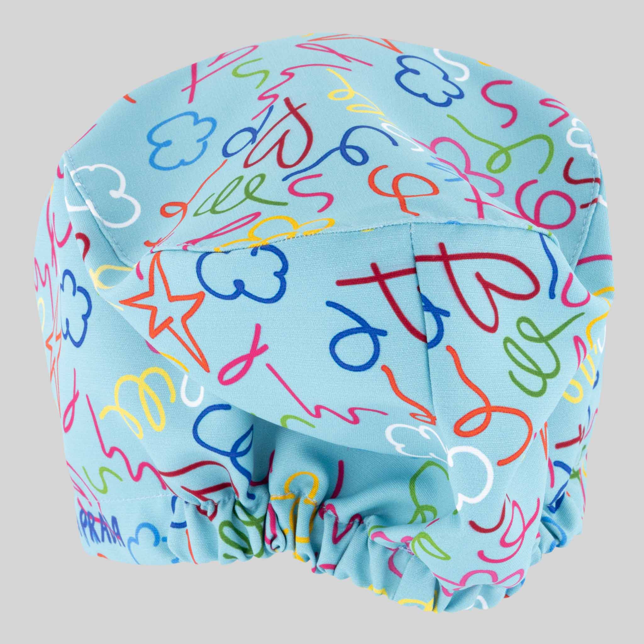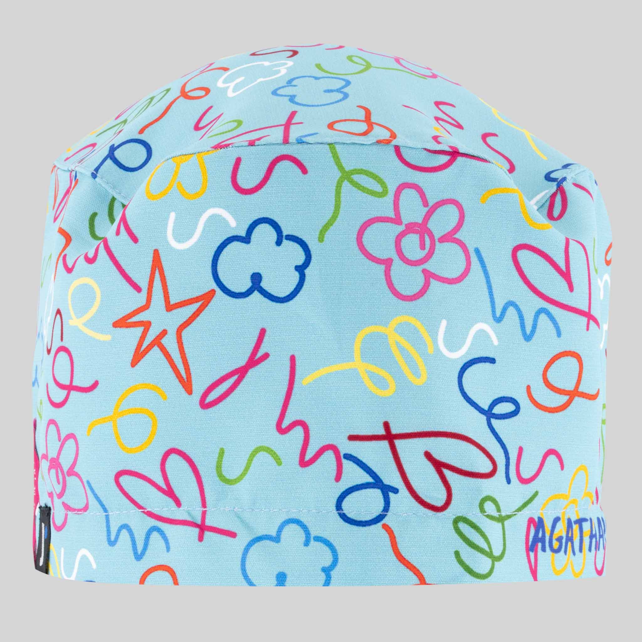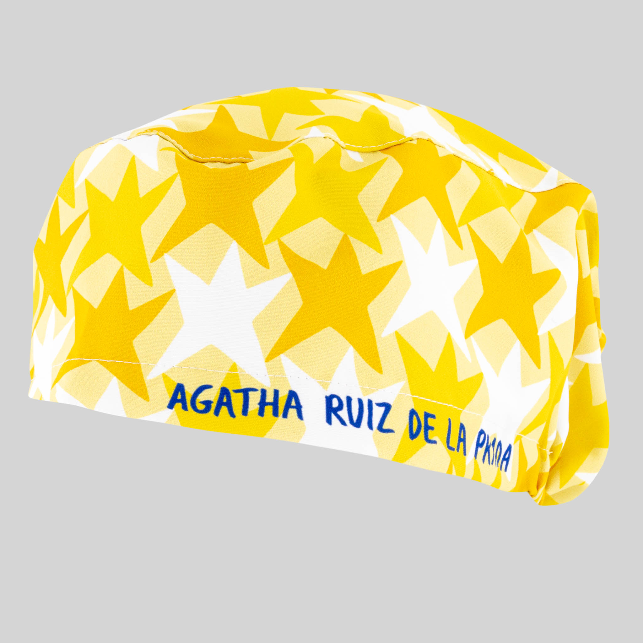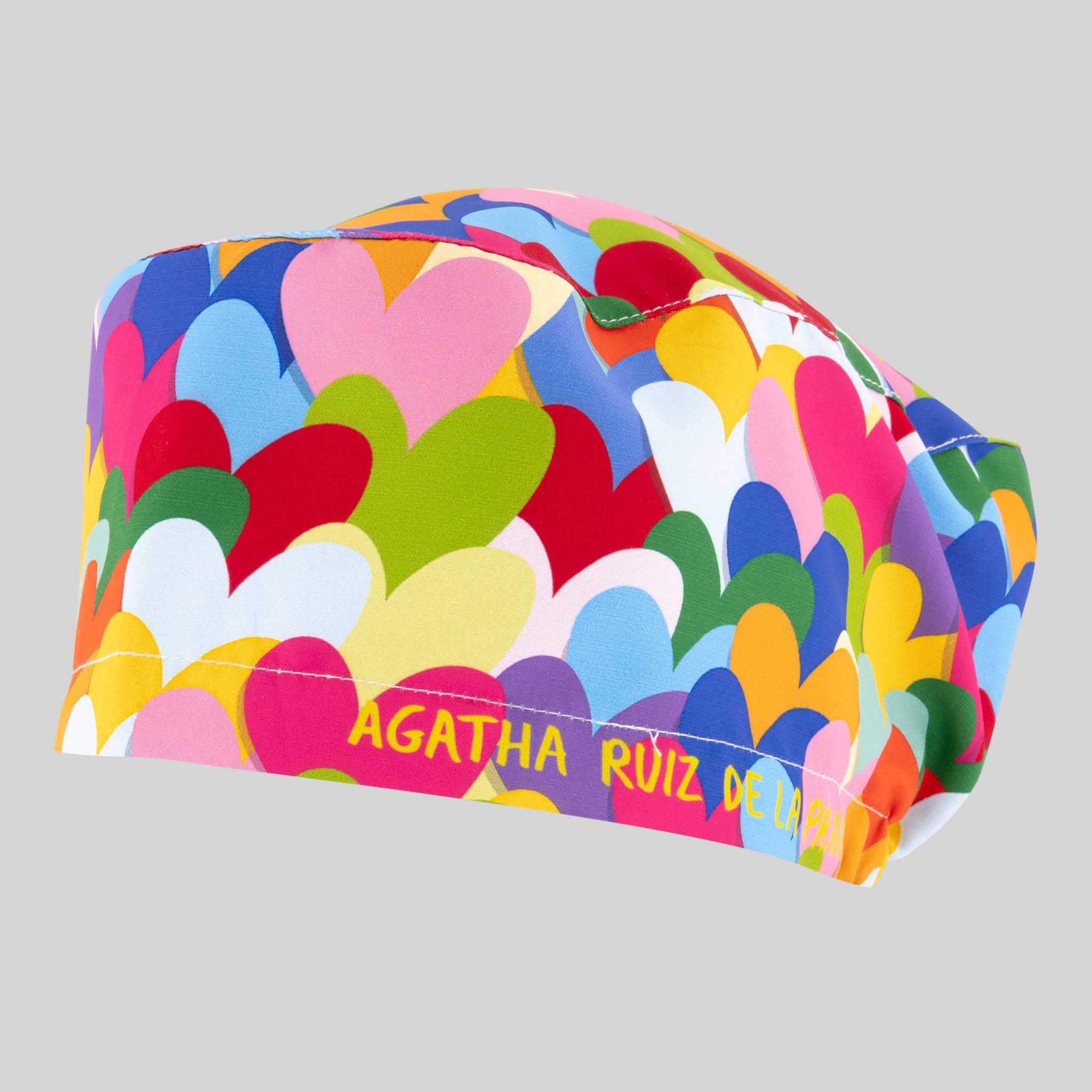 Gorro cirujano AGATHA con estampados originales de Agatha Ruiz de la Prada. En talla única con ajuste trasero de goma y franja de rizo absorbente. Confeccionado en microfibra 100% poliéster, resistente y suave. Ideal para profesionales sanitarios.