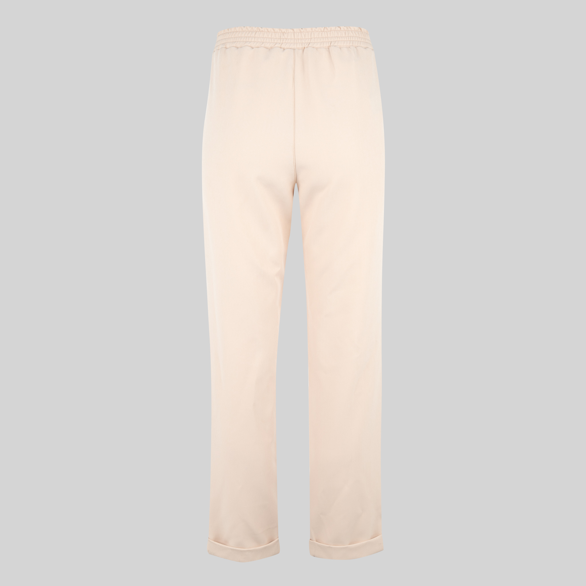 Su cintura trasera con goma proporciona un ajuste cómodo y flexible, permitiendo una adaptación perfecta al cuerpo sin comprometer la elegancia. Las pinzas en el delantero estilizan la figura, mientras que el bajo vuelto añade un toque moderno y sofisticado al conjunto.