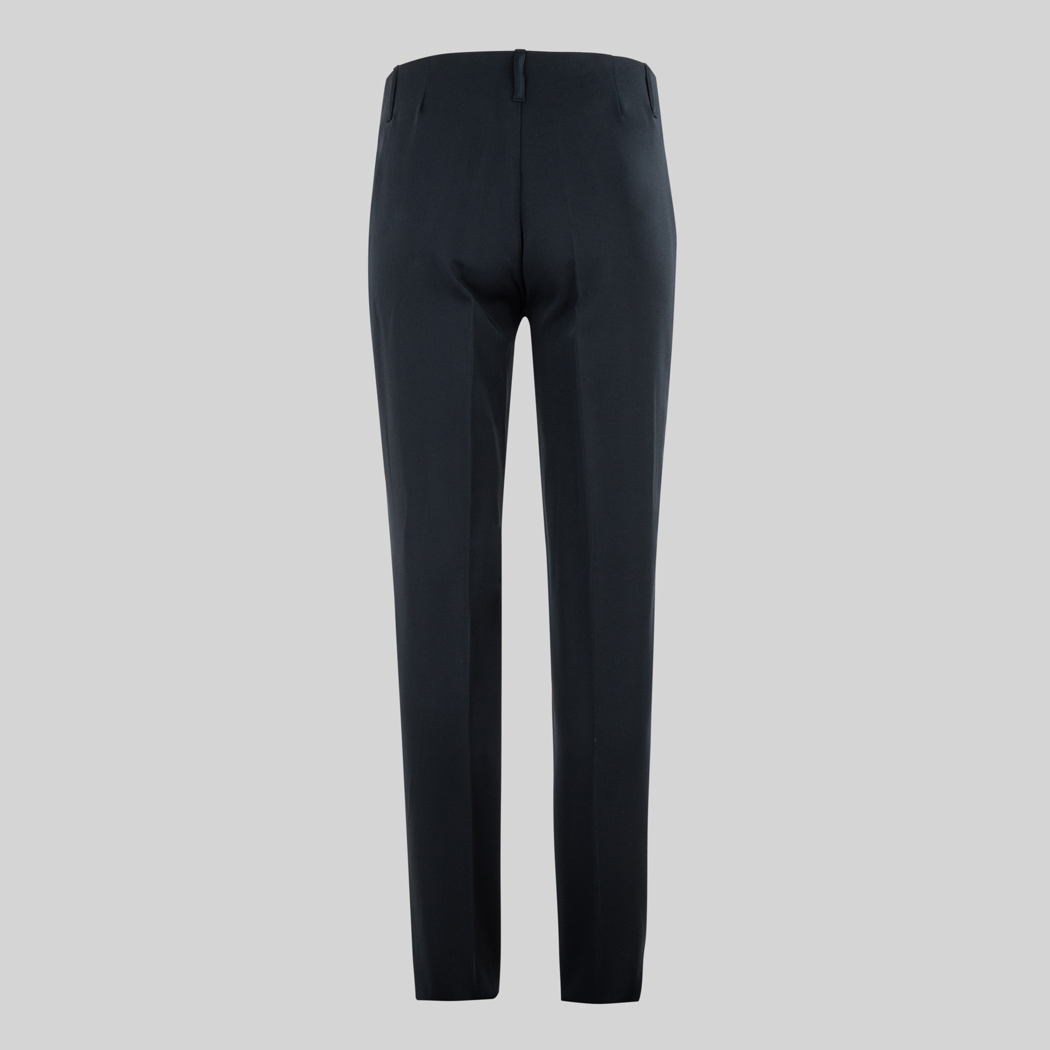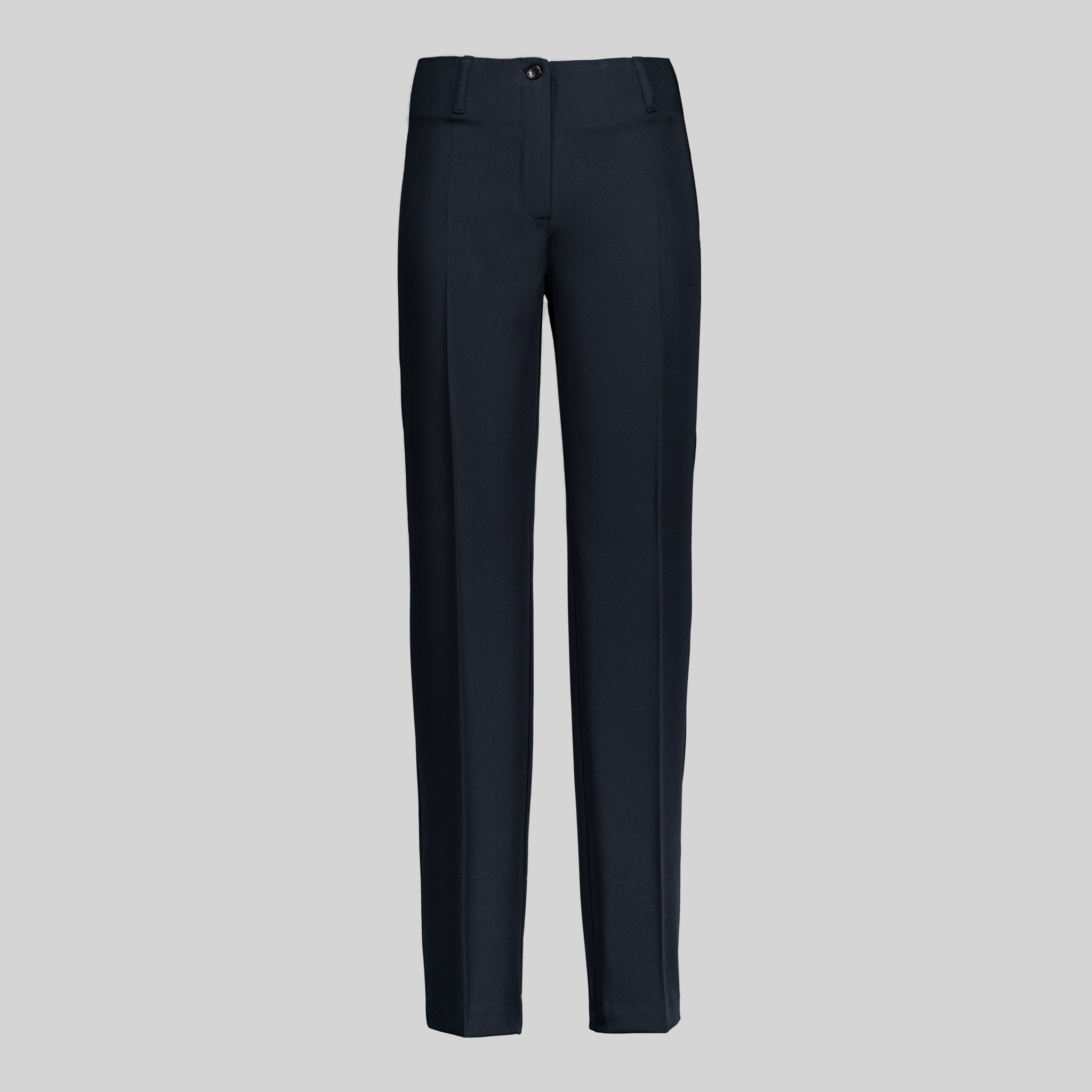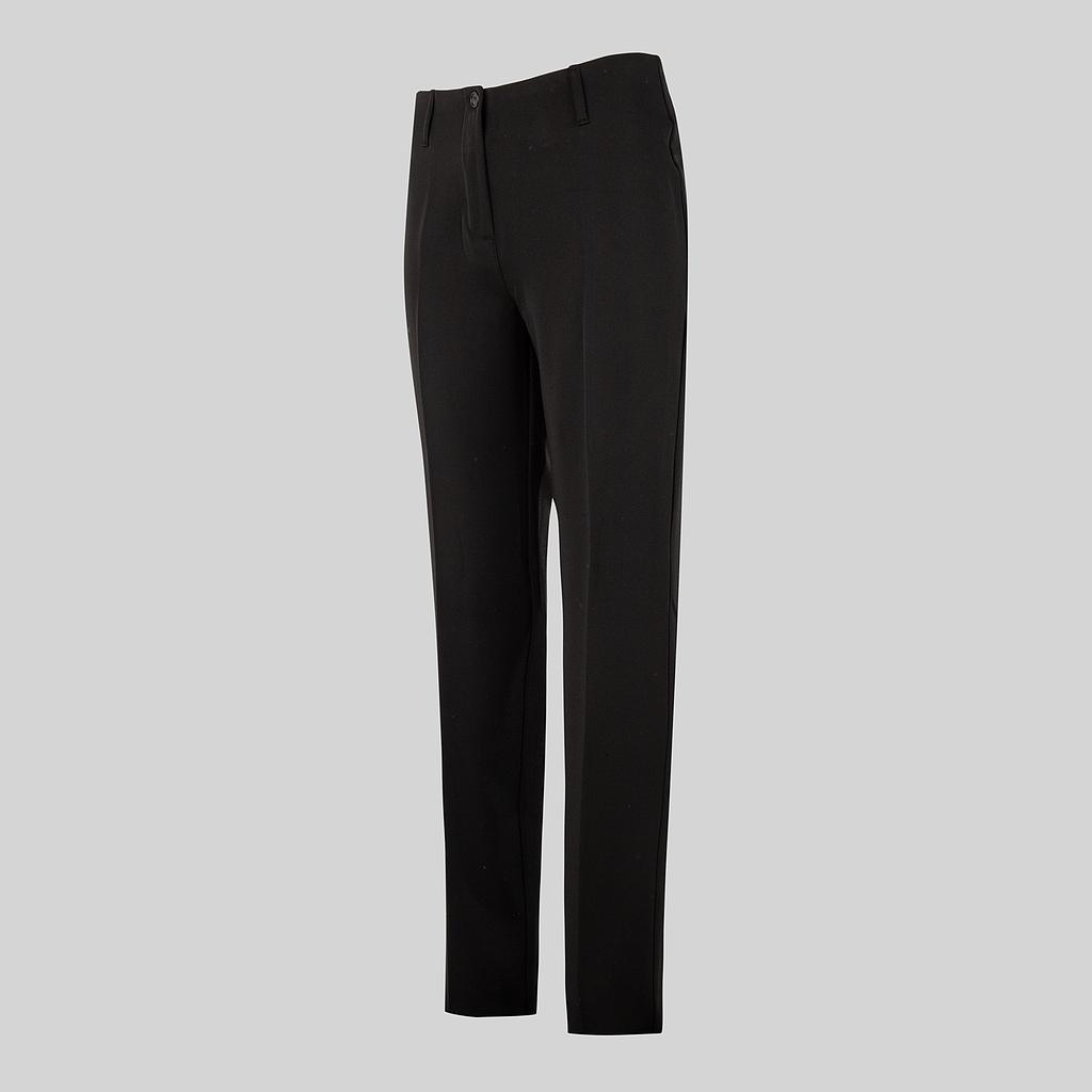 Pantalón de mujer de talle bajo en tejido TECNO (96% poliéster, 4% elastano). Sin bolsillos, con cinturilla con trabillas y cierre de botón y cremallera. Favorecedor, cómodo y resistente, ideal para entornos profesionales.