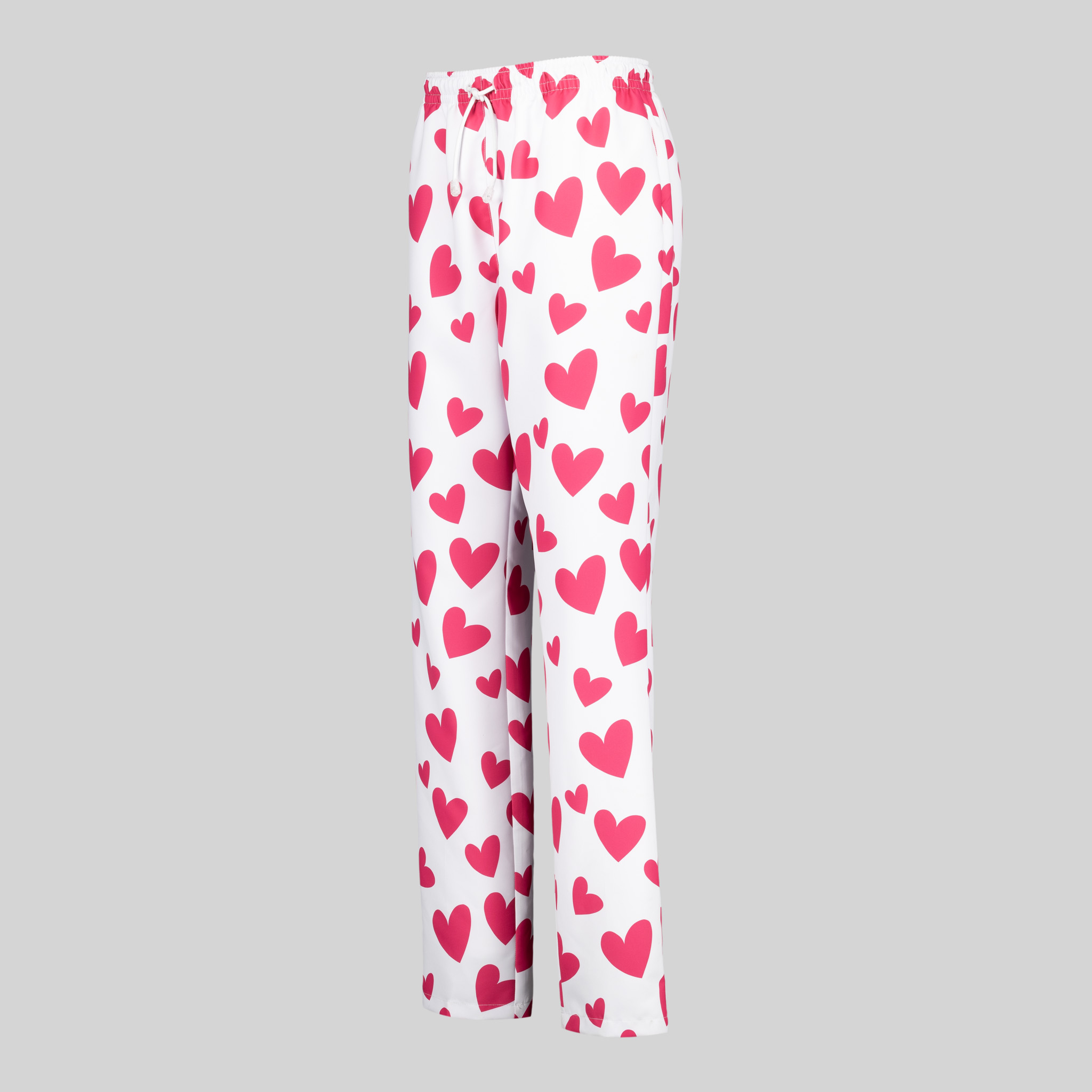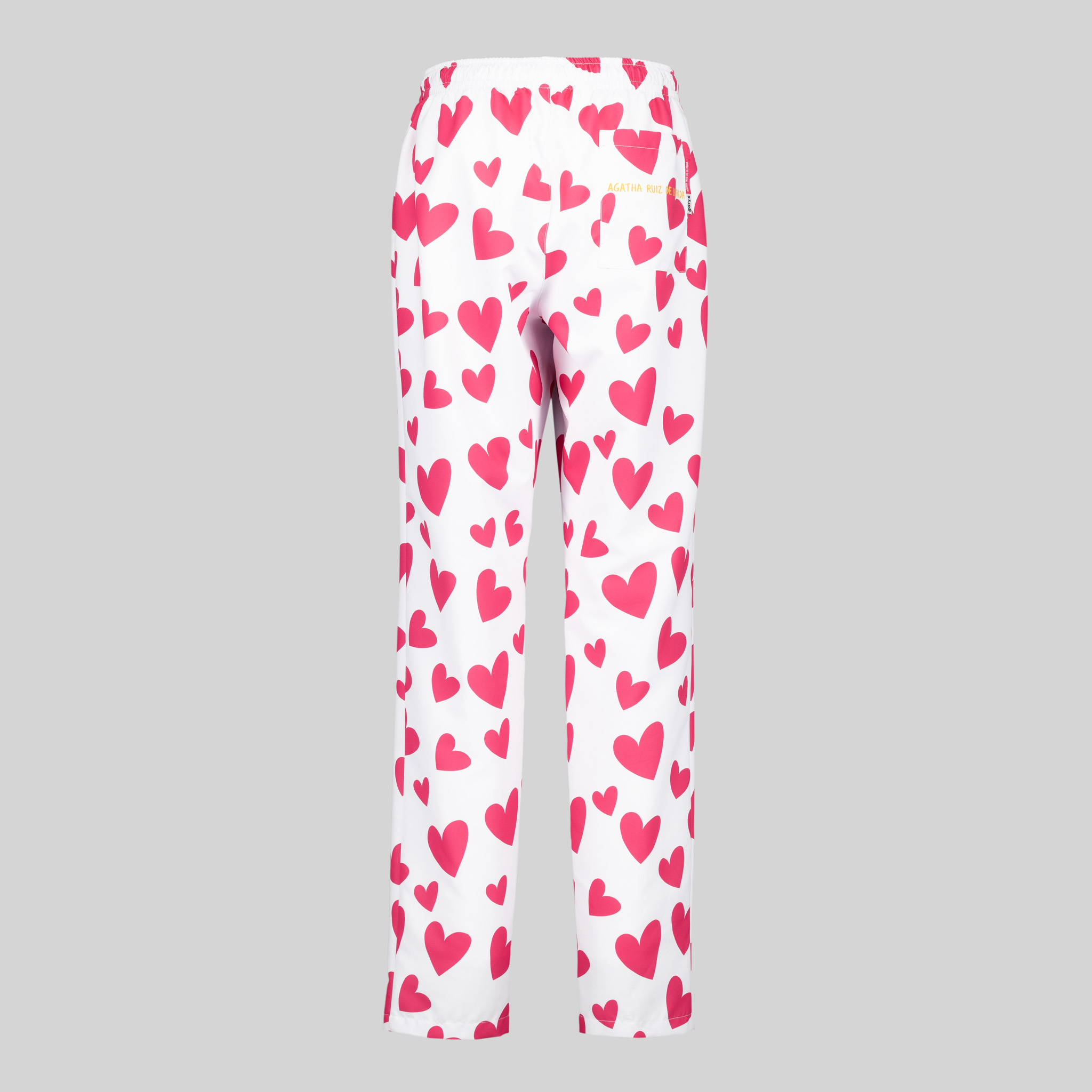Pantalón unisex cordón AGATHA con goma y cordón ajustable en la cintura. Con bolsillo trasero, costura central delantera y trasera y tejido en microfibra 100% poliéster, resistente y fácil de cuidar. Disponible en estampados “Cuore Rosa” y “Mexicano”.